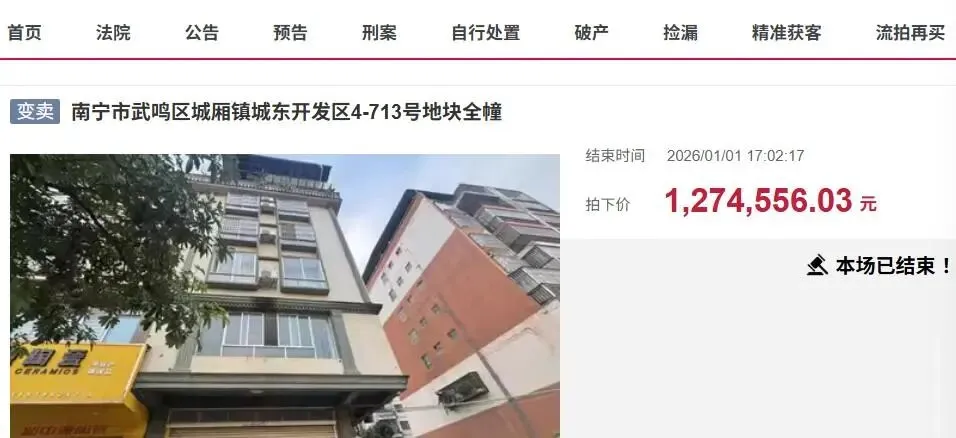 1月1日,在2026年元旦假期第一天,当大家都出门旅游的时候,在南宁市,却有人看好了法拍房市场,抄底买下了一栋不错的法拍房。