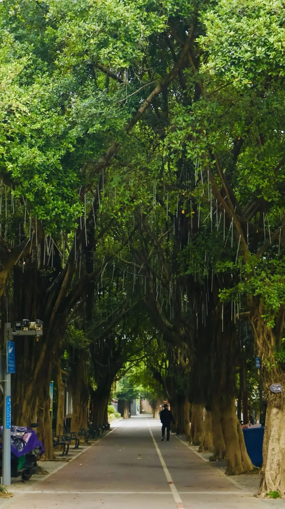 当然今天我看到更多的还是满道路都是大榕树,这也是我很喜欢的树种。看起来有种古老神秘感,但是绿叶又很富有生机。