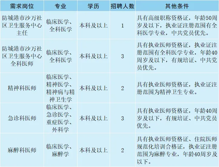 医护招聘温馨提示:防城港市妇幼保健院,2026年招聘急诊医师、麻醉医师、全科医师、精神科医师等人员。欢迎人才加入我院!