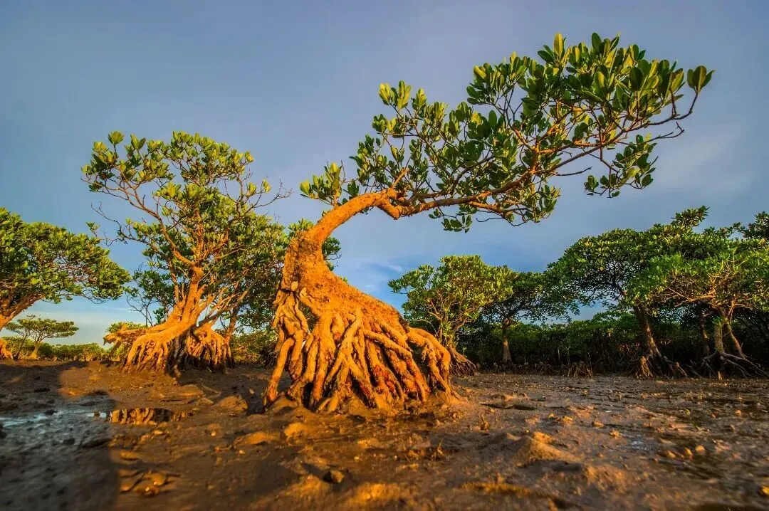 北仑河口的红树林,是繁荣兴旺的家族,根走芽,芽发根,易生易长,海岸处处为家。