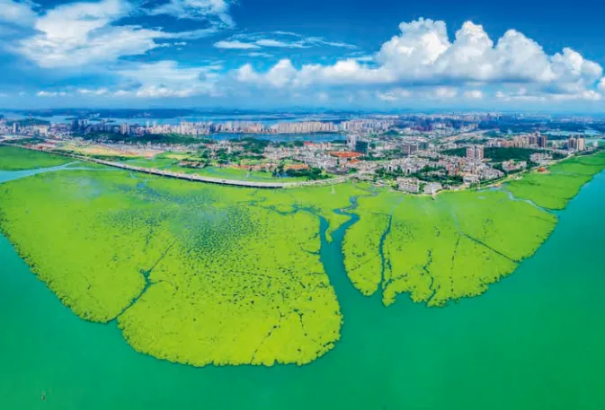 从2004年开始,防城港市的有关部门定期对红树林生态系统、生物多样性、海洋环境和鸟类进行科研监测,对重点海区、园区污水排放口、入海河流断面等实行全天候在线监测,对北仑河、珍珠湾等重点区域进行环境状况趋势性监测。近年来对重点海域的东湾、西湾,进行了全面清淤,并对西湾岸线进行整治,开展了红树林、海草床修复工作。同时,不断控制近岸养殖规模,推进人工鱼礁、海洋牧场建设,控制围填海总量规模,控制北仑河、企沙港和珍珠湾等海域的开发利用空间,增加生态保护空间,使自然岸线保有率不低于35%,海洋生态功能区面积占防城港市近岸海域面积的比例不低于40%,使防城港的红树林面积每年都有所增加。如果说数字就是音符的话,那么,以上这些数字,不就能谱成一首首激动人心的歌曲吗?在这些简单的数字里,包含着多少风霜雨雪的考验,反映了多少日日夜夜的鏖战,体现出多少攻关克险的智慧啊!