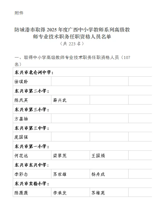 | 防城港人社局 | 2025年防城港市中小学教师系列副高级职称评审结果公示 |