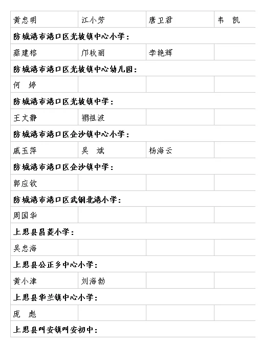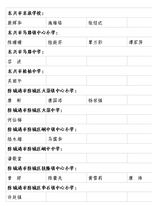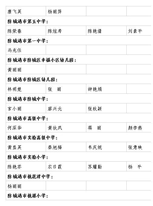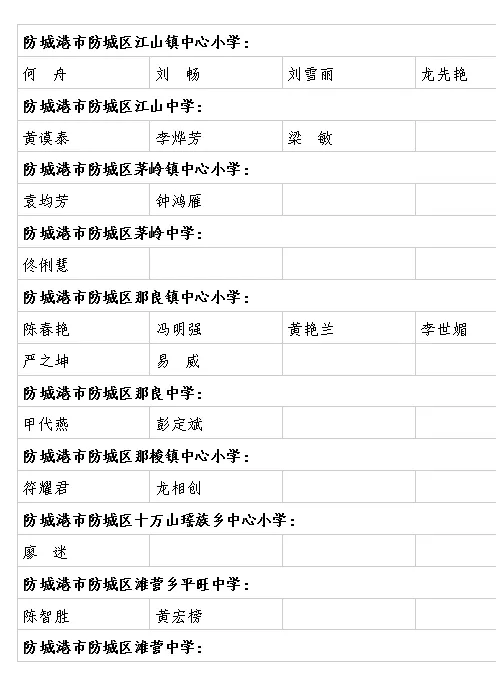 | 防城港教育局职改办 | 2025年度中小学教师系列中级职称和市直学校初级职称评审结果公示名单 |