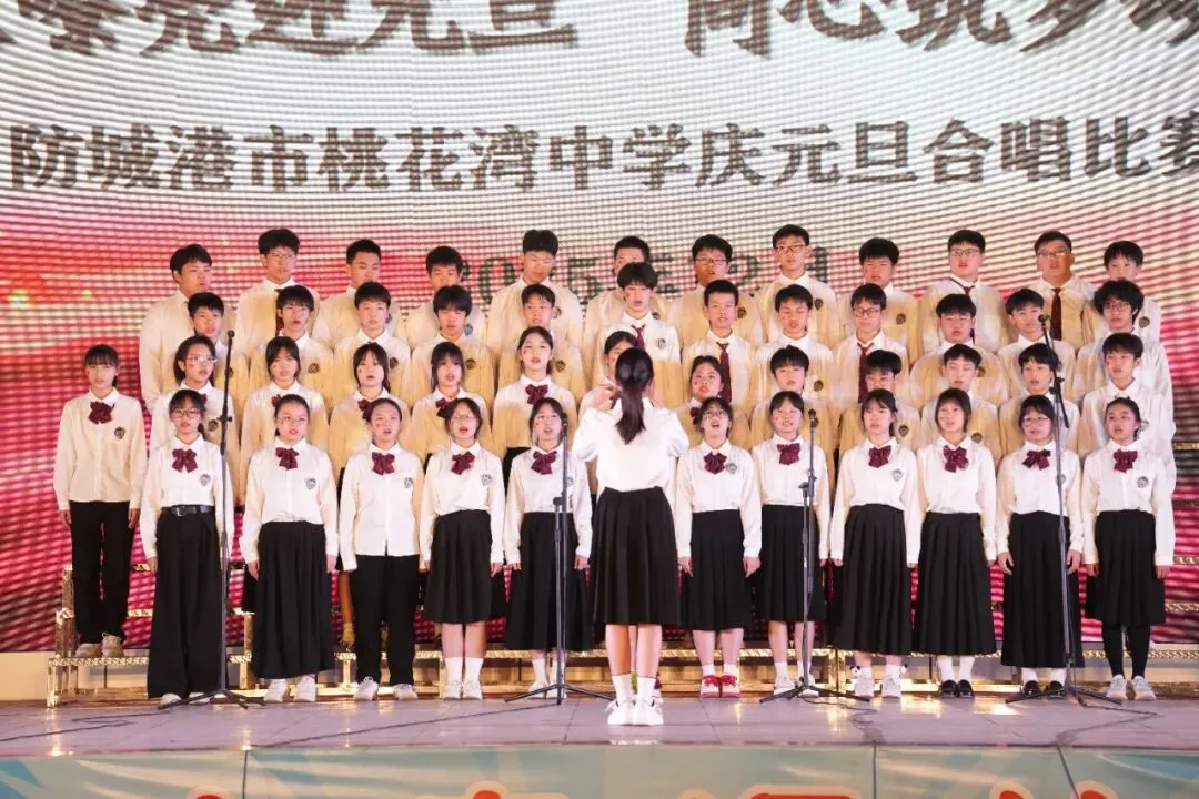 冬日校园暖意浓,红歌嘹亮颂初心。为传承红色基因、厚植家国情怀,在2026年元旦佳节来临之际,防城港市桃花湾中学举办以“红歌嘹亮迎元旦 同心筑梦颂党恩”为主题的庆元旦合唱比赛。师生们以饱满热情、嘹亮歌声重温红色经典,为新年奏响青春奋进的序曲。