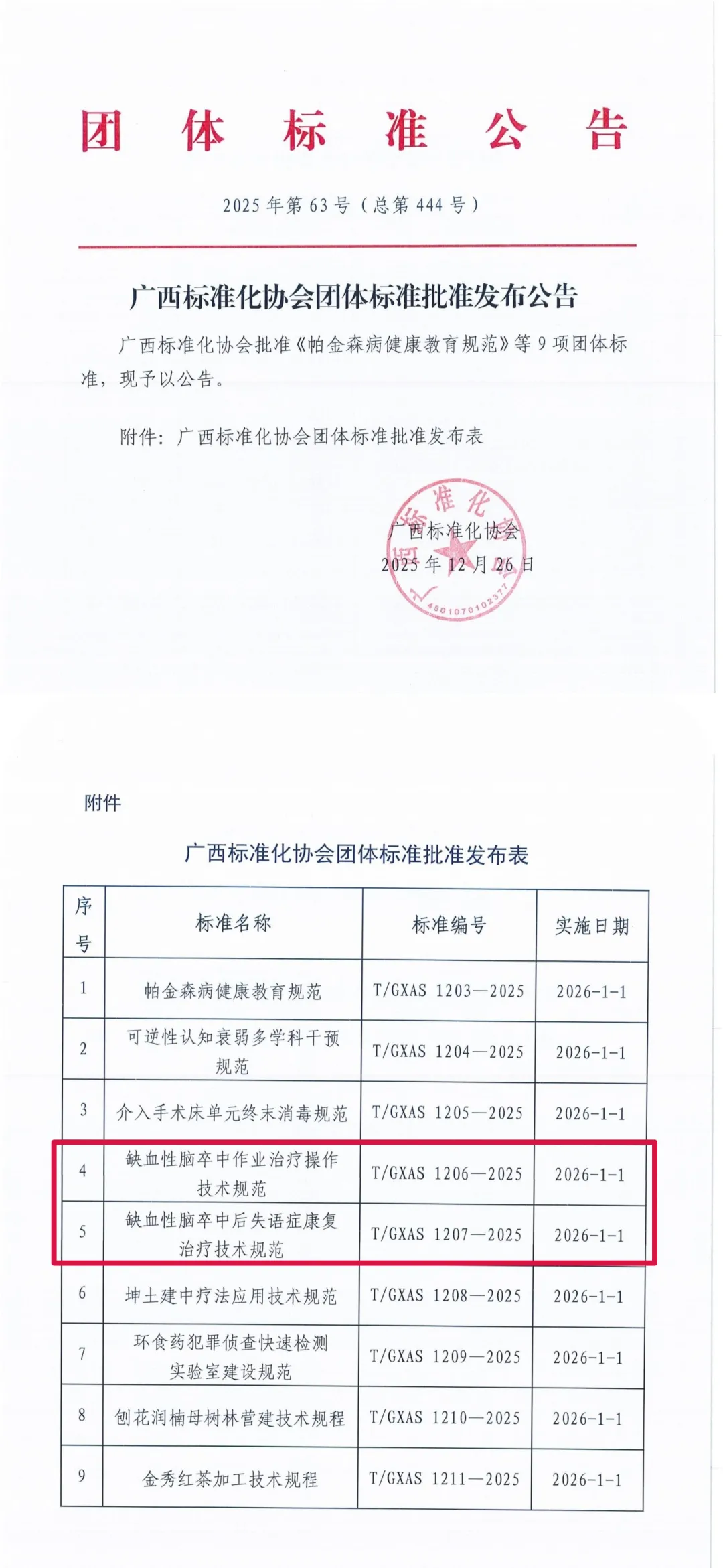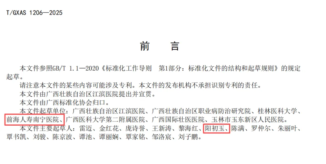 近日,广西标准化协会正式批准《帕金森病健康教育规范》等9项团体标准。前海人寿南宁医院康复医学科凭借扎实的康复诊疗技术与丰富的脑卒中康复临床经验,深度参与《缺血性脑卒中作业治疗操作技术规范》、《缺血性脑卒中后失语症康复治疗技术规范》两项核心团体标准的制定工作。 这两项标准将为缺血性脑卒中患者的康复治疗建立标准化操作准则,进一步规范作业治疗流程、明确失语症康复治疗技术要点,填补了区域内脑卒中康复领域标准化建设的部分空白,帮助提升脑卒中康复服务的专业性与同质化水平,让更多脑卒中患者能够享受到更科学、规范的康复医疗服务,助力患者更好地回归正常生活。
