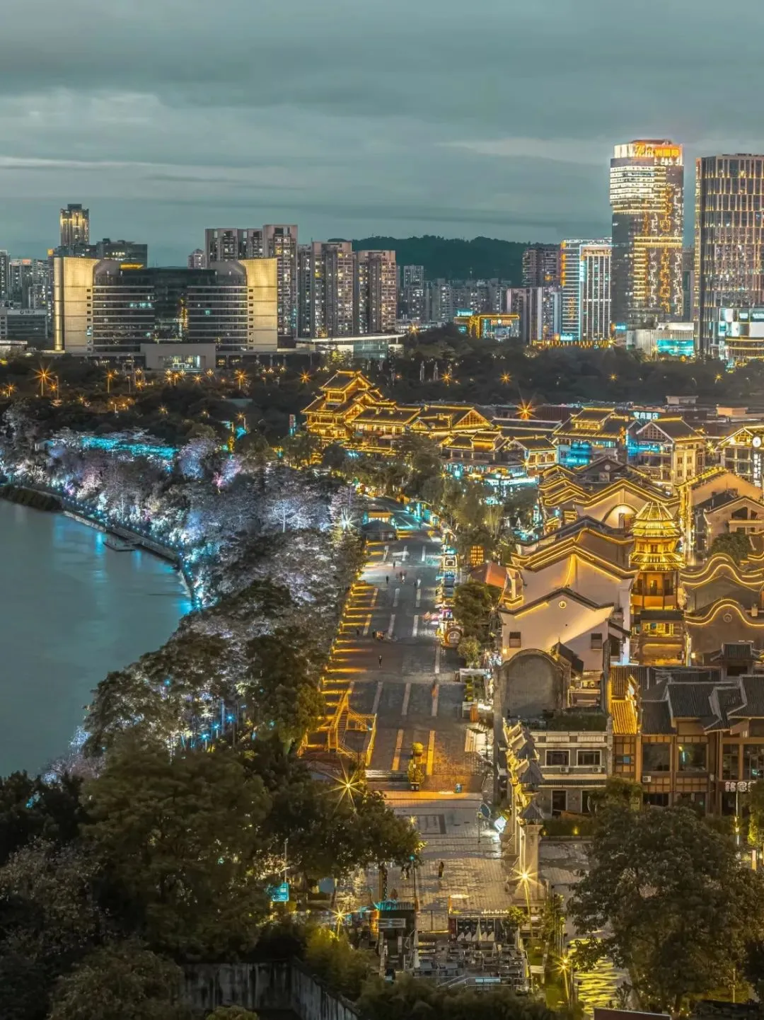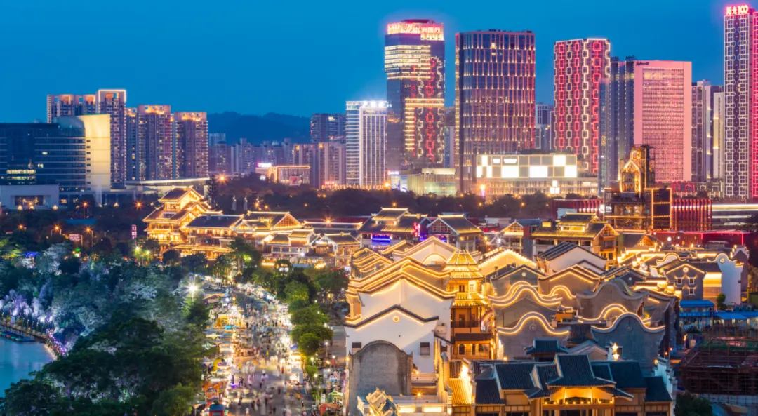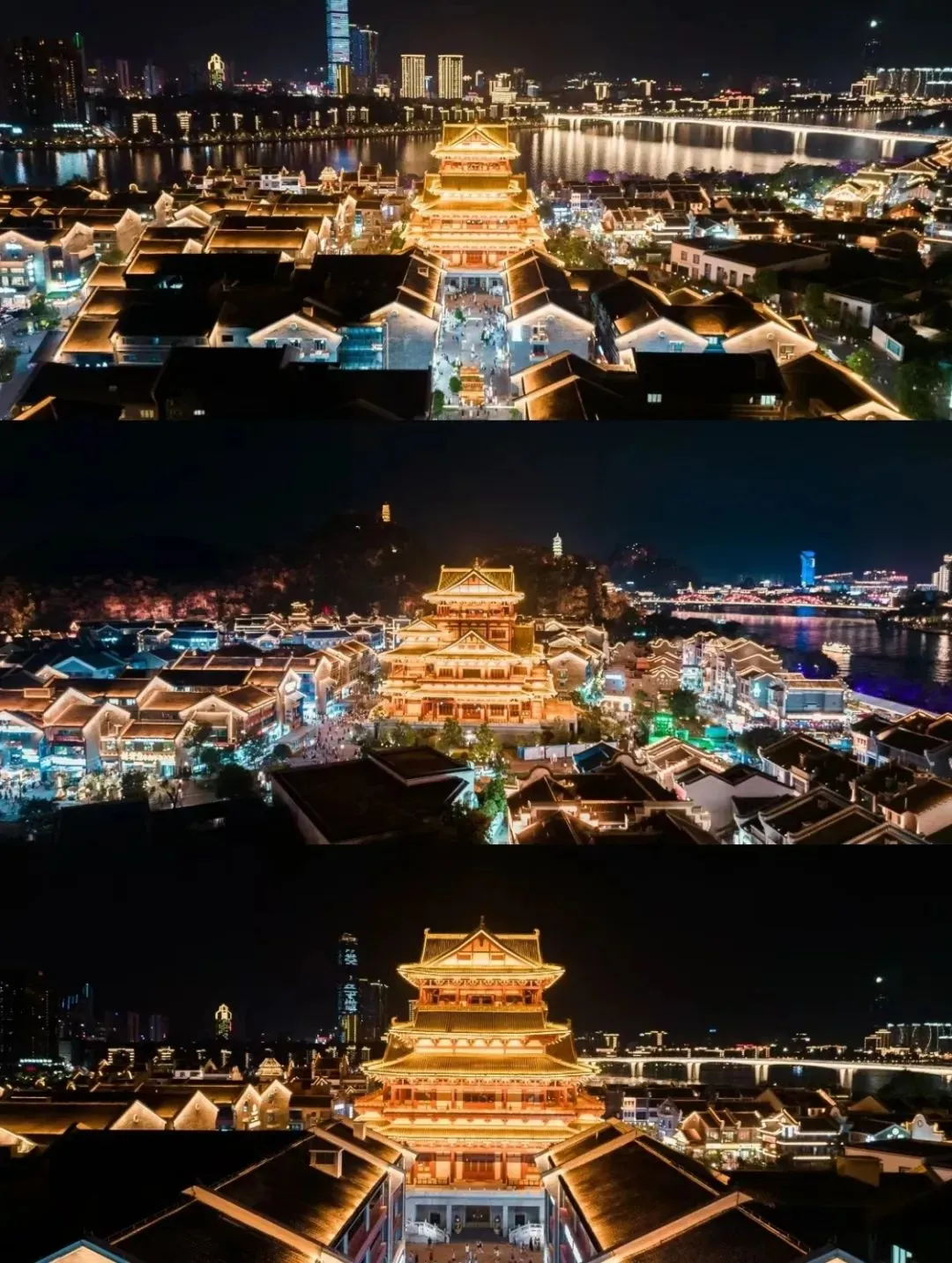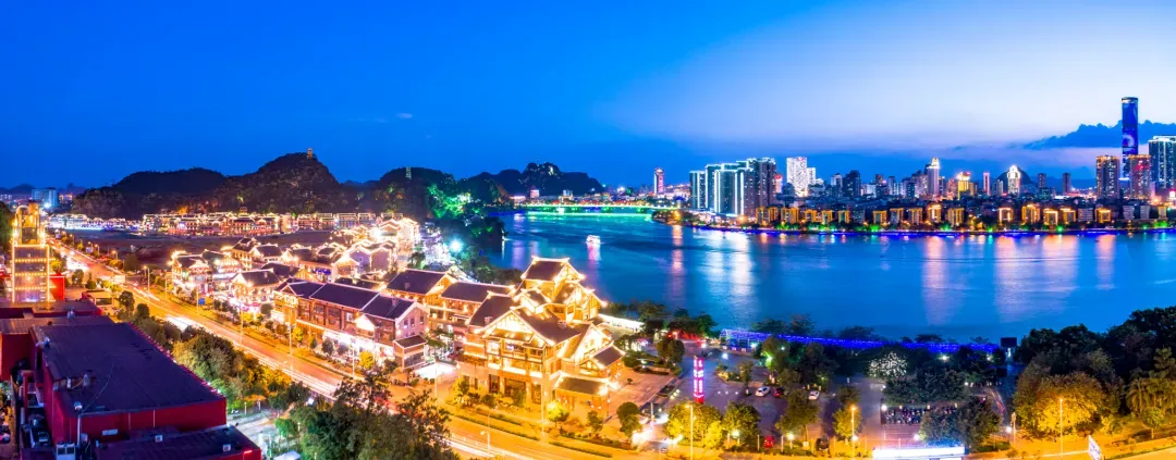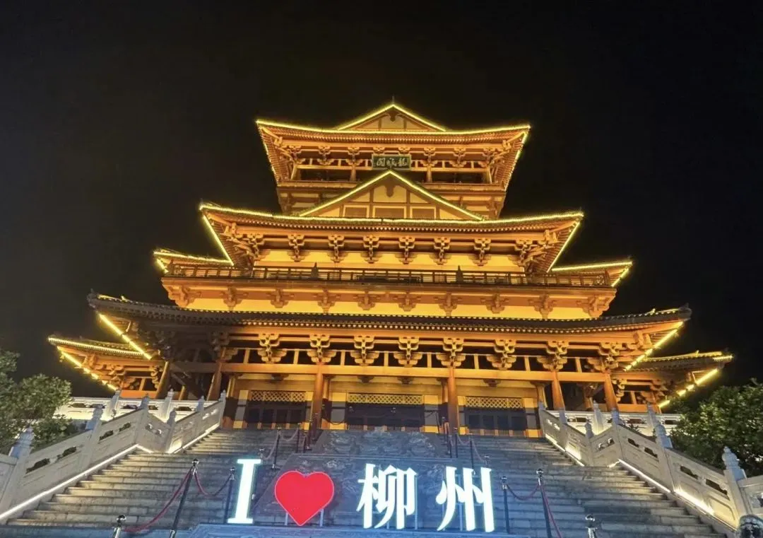 璀璨夺目的龙城阁和灯火绚丽的古典建筑群交相辉映,让整个文化街区成为了“百里柳江”上一颗璀璨的明珠。