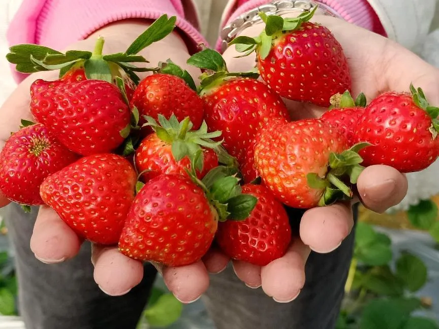 这里的草莓果肉细腻无空心