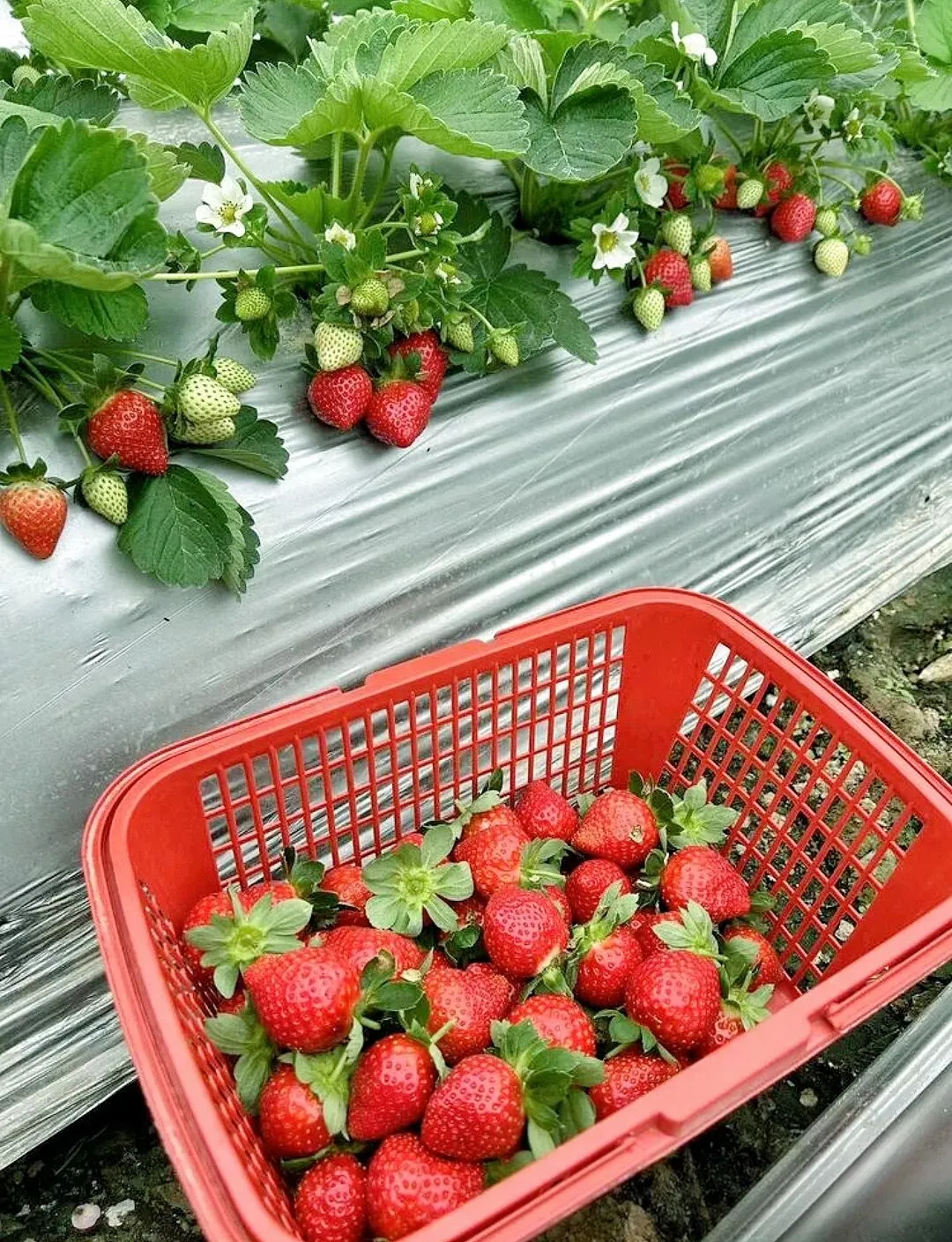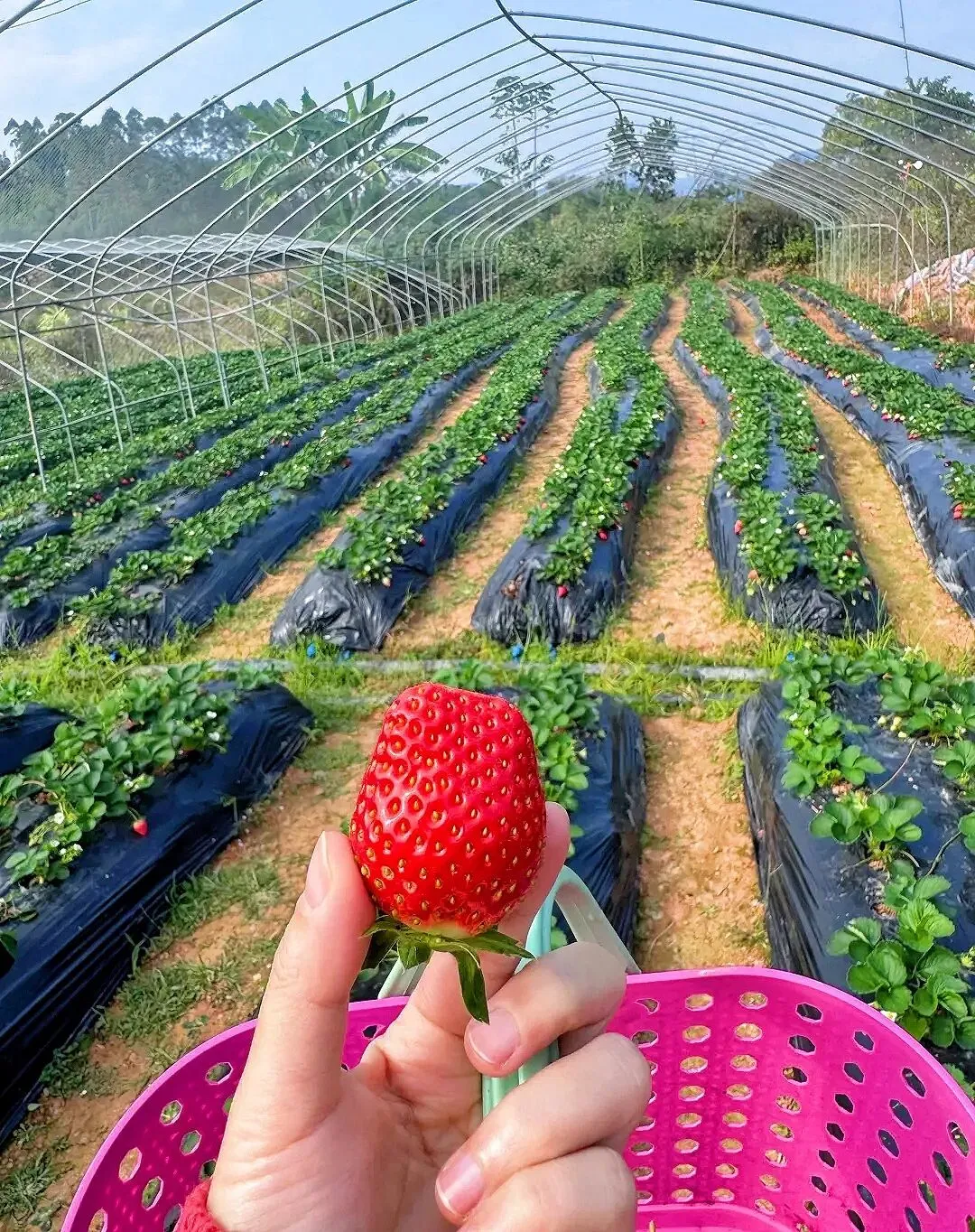 一进园子就被红彤彤的草莓园治愈