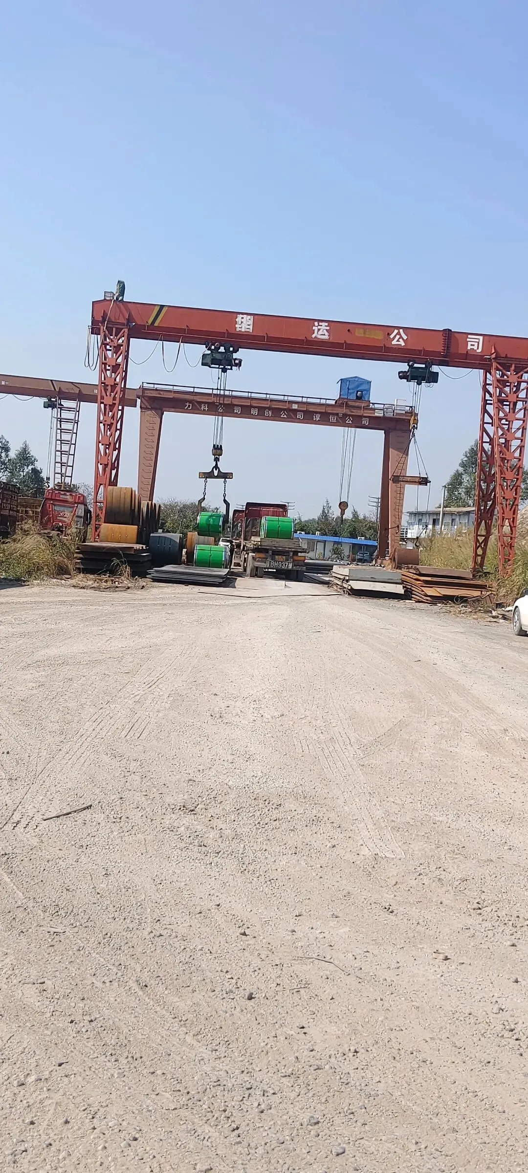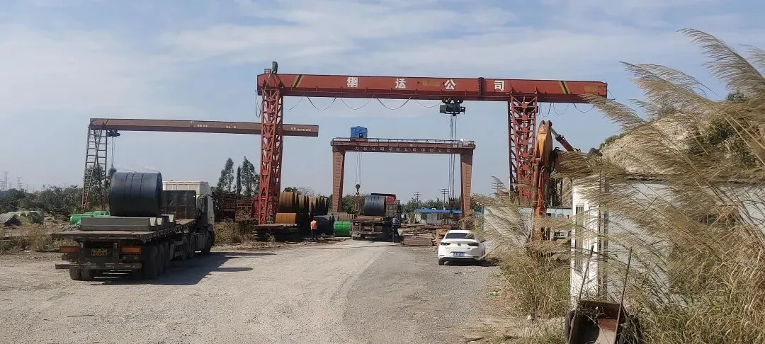 上午的阳光洒在防城港港口区企沙镇的钢材货场,碎石路面上的卡车轮胎印纵横交错,红色的龙门吊静静矗立,像守护货场的钢铁巨人。货场里,灰色的钢铁热圈与青色的钢铁冷圈整齐码放,在阳光下泛着金属光泽,这些从柳州钢铁基地远道而来的“工业基石”,正等待着奔赴下一段旅程。