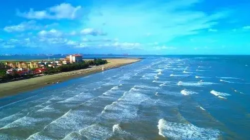 每当潮水退下,湿漉漉的十里沙滩上,潮纹隐现、珠玑遍地,各种各样的海滩动物纷纷“崭露头角”,大大小小的螃蟹横行无忌。集沙细、浪平、坡缓、水暖于一身,无污染,海水清澈,是广西继北海银滩之后的又一滨海旅游热点。