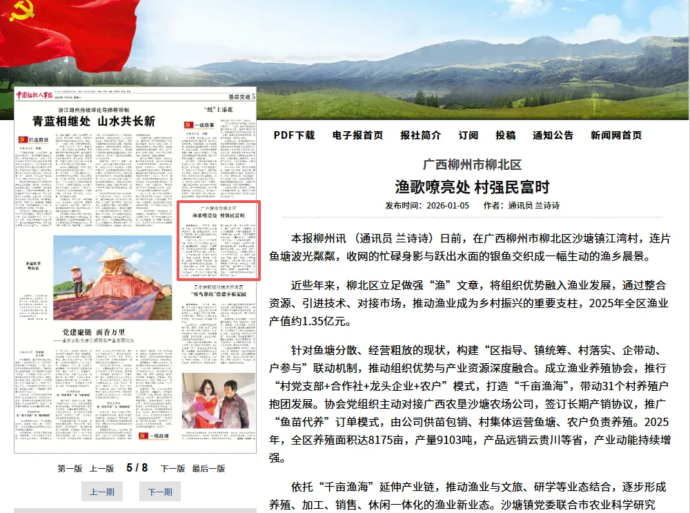 近些年来,柳北区立足做强“渔”文章,将组织优势融入渔业发展,通过整合资源、引进技术、对接市场,推动渔业成为乡村振兴的重要支柱,2025年全区渔业产值约1.35亿元。