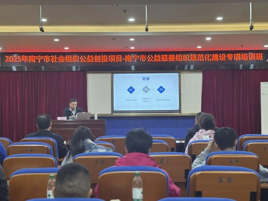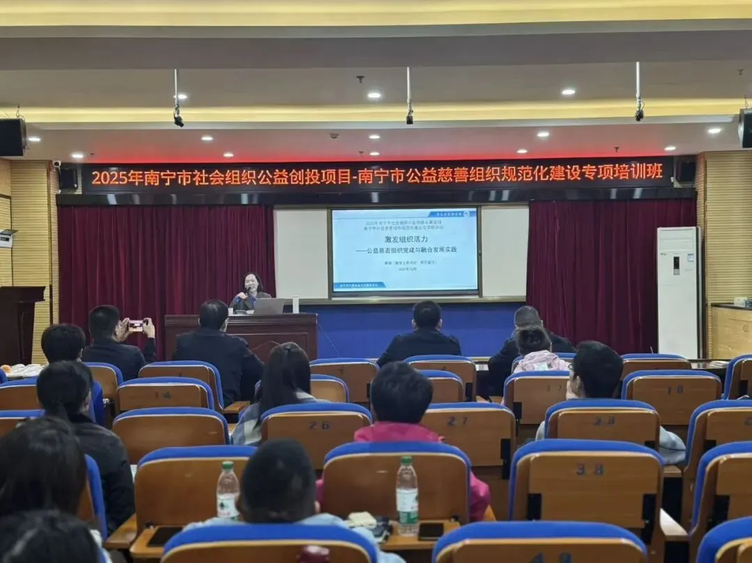 为进一步规范全市公益慈善组织规范化建设管理工作,由南宁市民政局指导,南宁市华通社会组织服务中心和南宁市社会组织联合会承办的南宁市公益慈善组织规范化建设专项培训班于2025年12月30日顺利举行,84名公益慈善组织代表参加了此次培训。