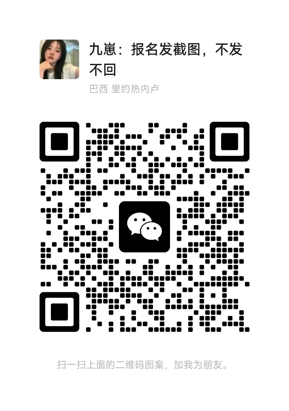 添加一个微信就行,避免报名冲突