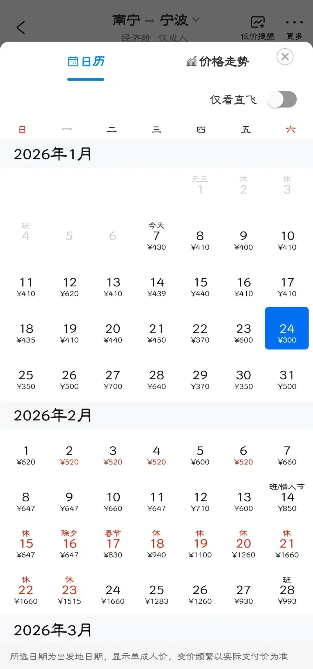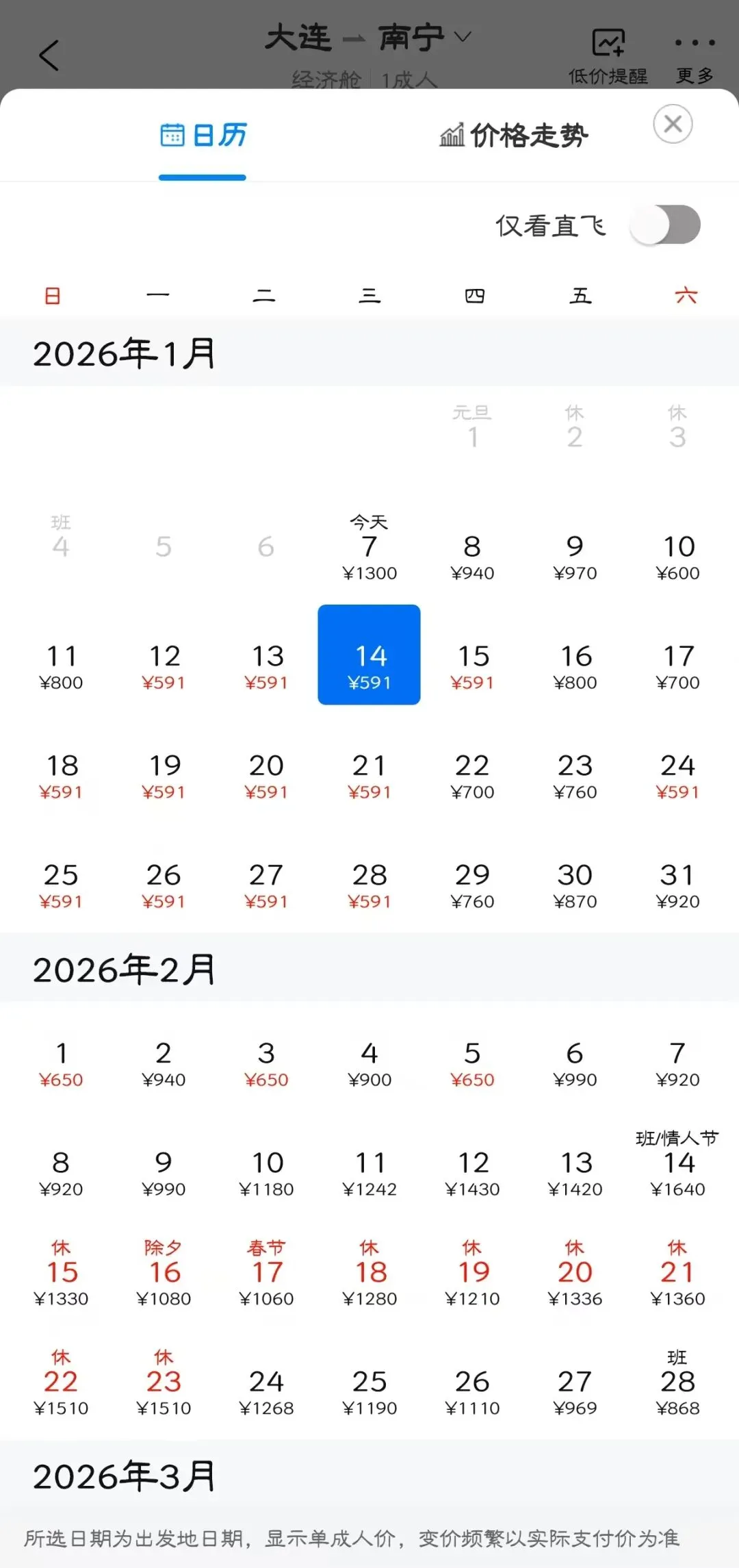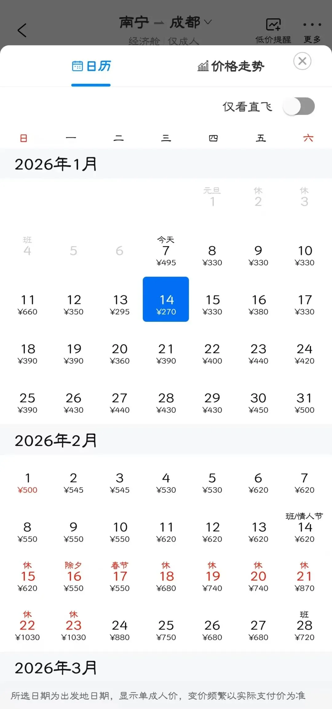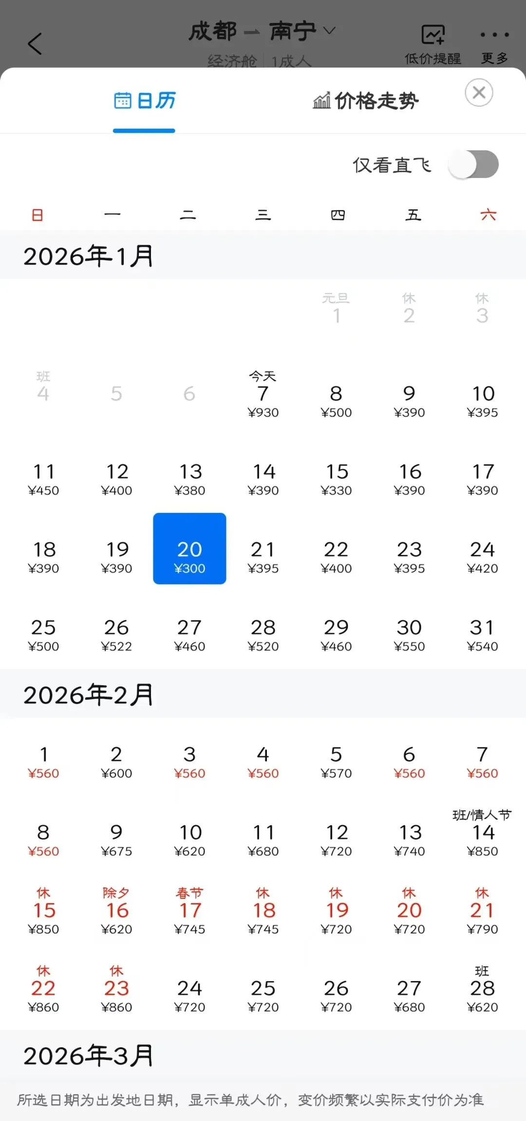 👉“去程最低价/返程最低价”指的是1月特价机票价格,即1月7日-1月31日期间特价机票。