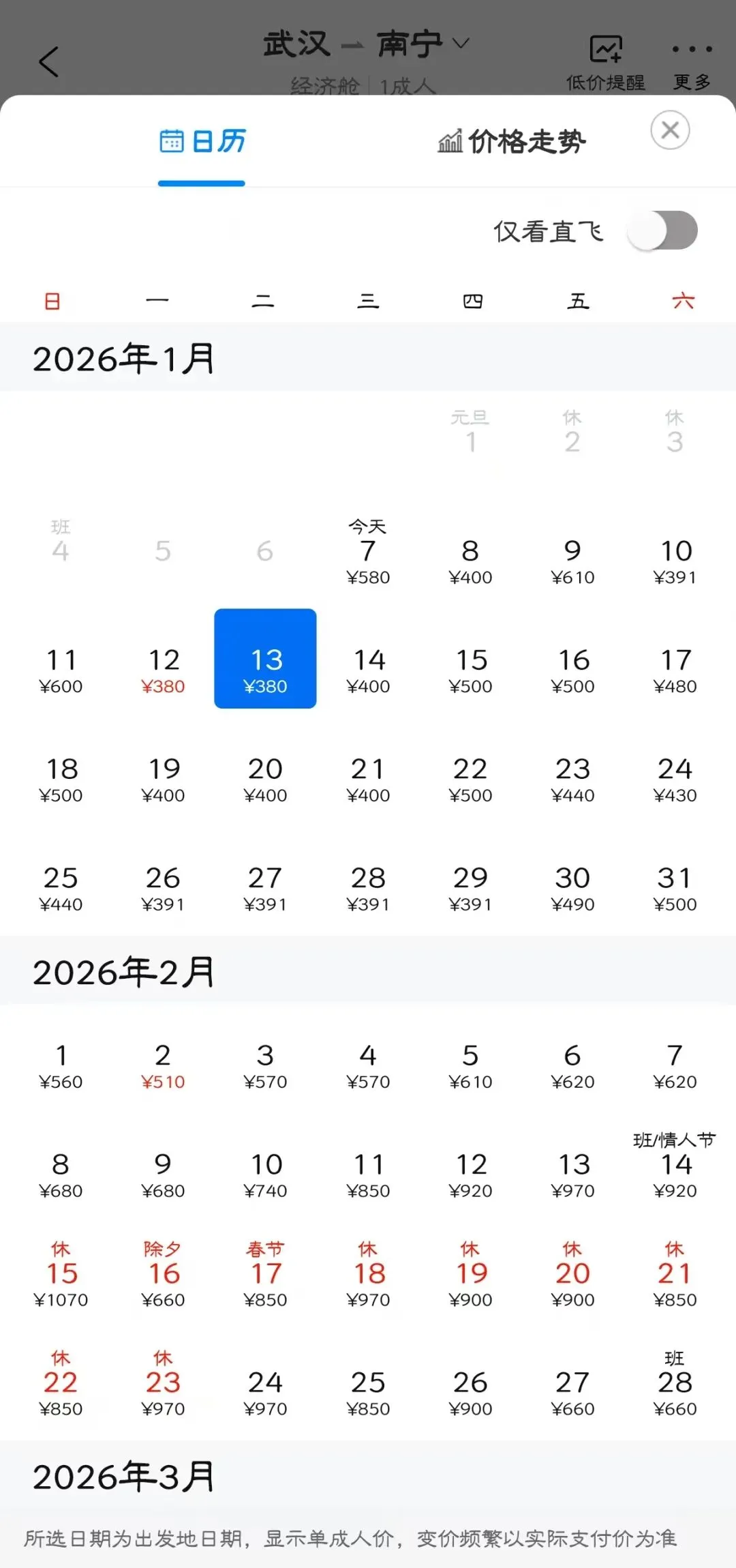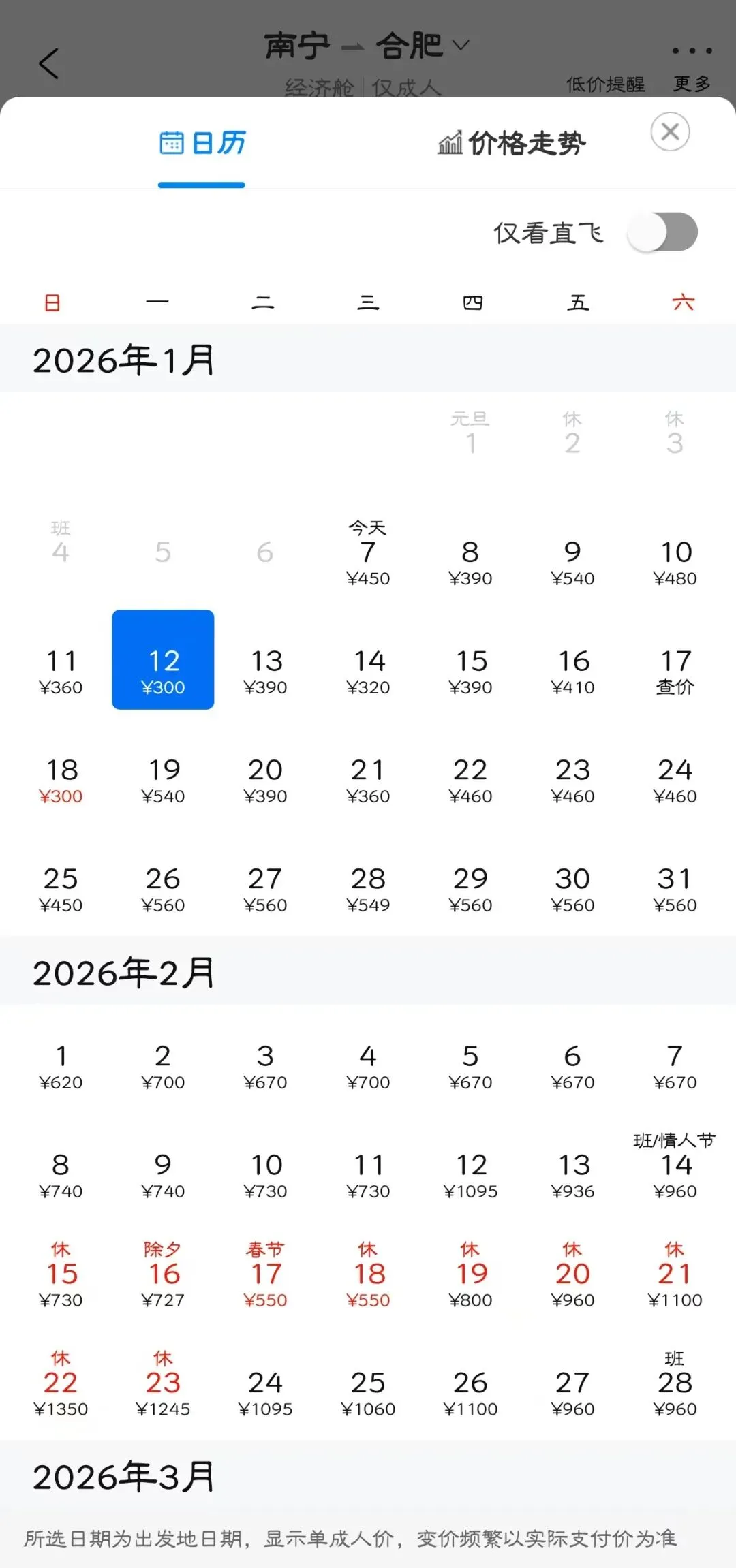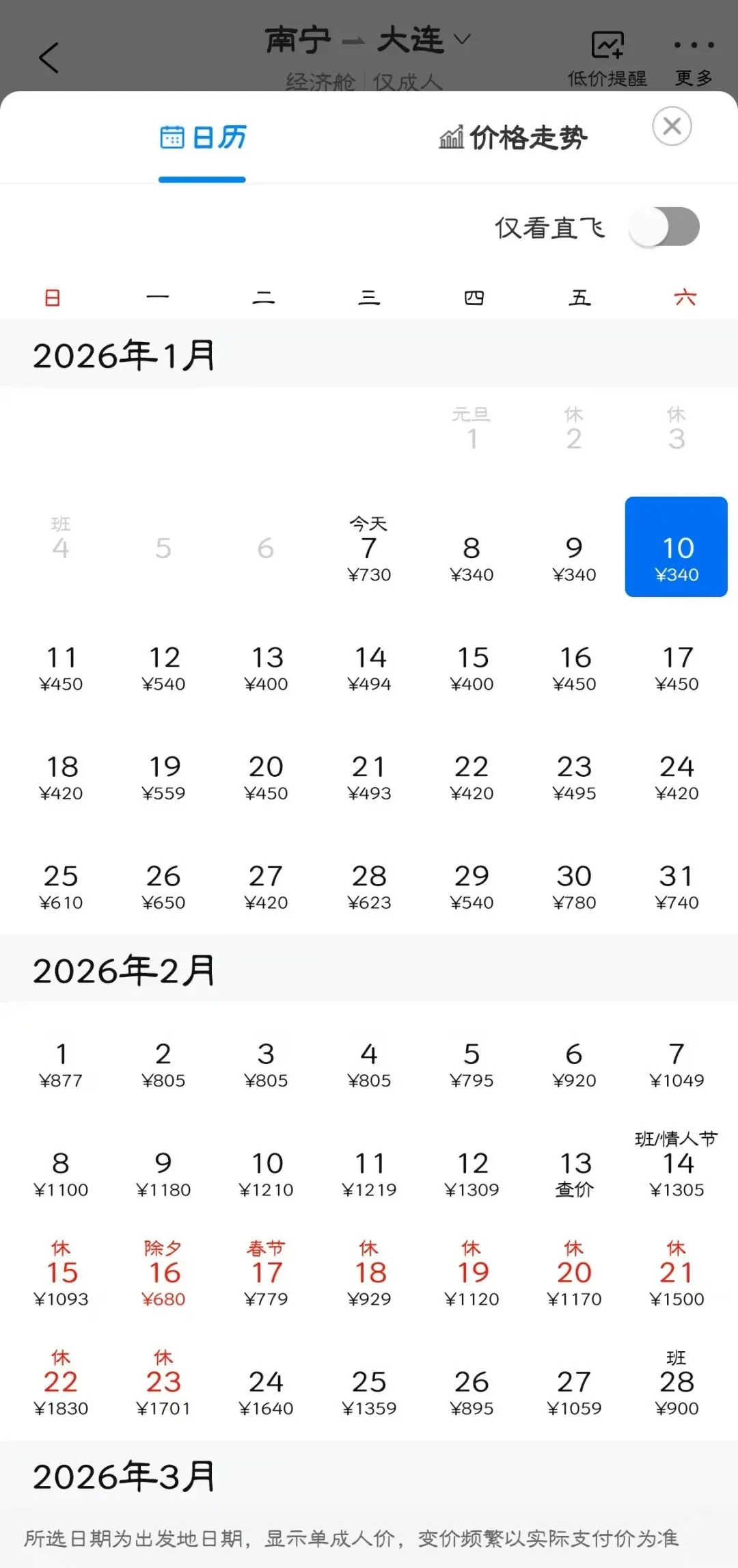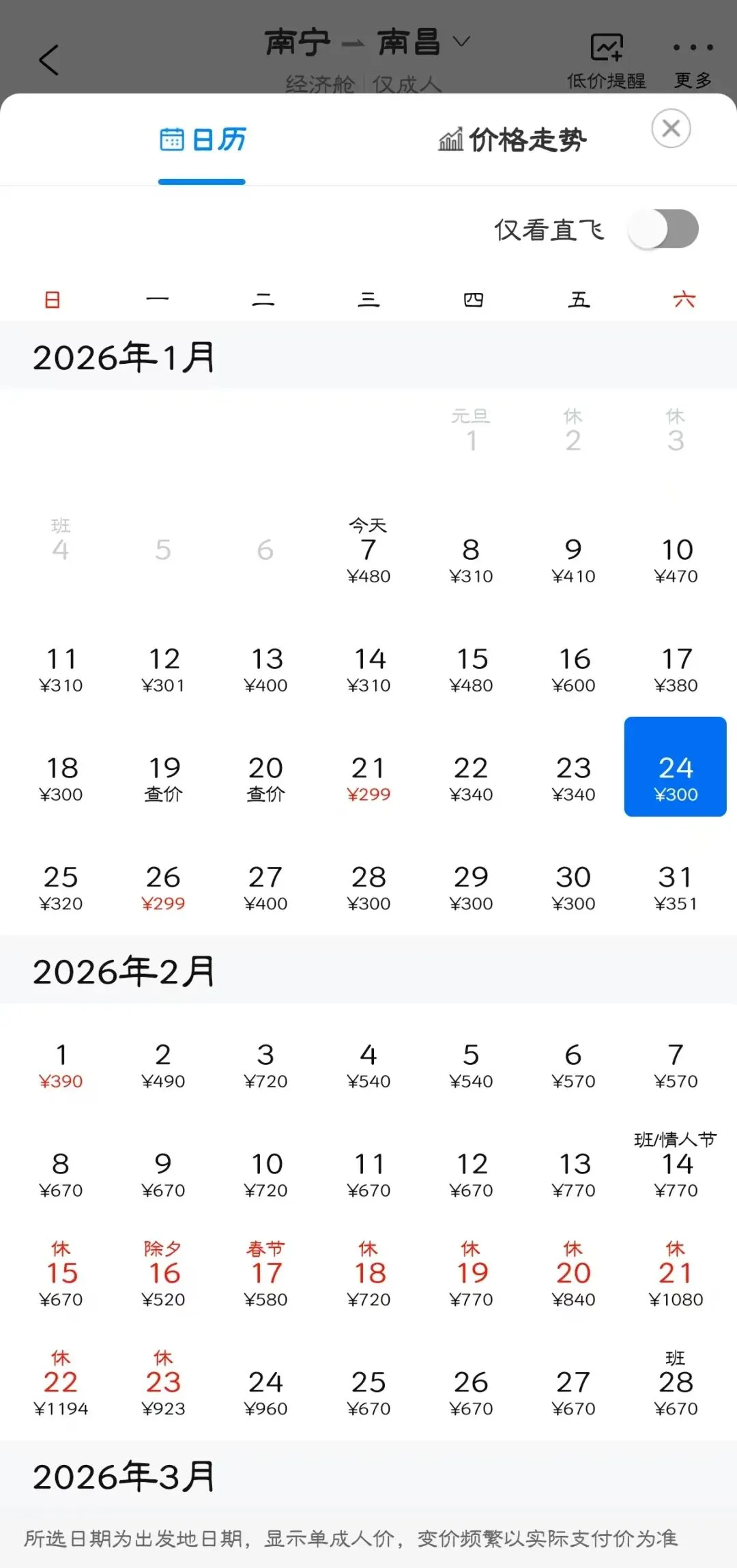 👉“去程最低价/返程最低价”指的是1月特价机票价格,即1月7日-1月31日期间特价机票。