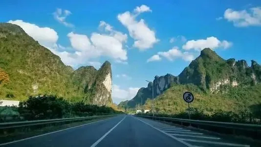 早上7:30,蓝田高速收费站口集合发车贴,分发对讲机后出发,经过叙永,贵阳,进入广西境内的平果市,一路崇山峻岭风景壮美。