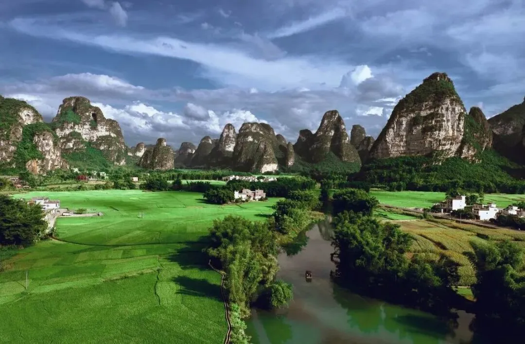 明仕田园素有小桂林之称。明仕田园因发源于越南的明仕河而得名。这里景色优美青峰碧水,绿野稻田,红棉翠竹,灰瓦白墙,农夫荷锄,牧童戏水,风光俊朗清逸,极富南国田园气息。每一幅画面都是一处意境,一派原生态的自然景象。在这里,你会看到典型的喀斯特峰林地貌景观,到处都是形态各异的山峰,山环绕着水,水倒映着山,行走在明仕田园如同遨游在山水画之间,美丽、宁静,有了陶渊明世外桃源般的体验。