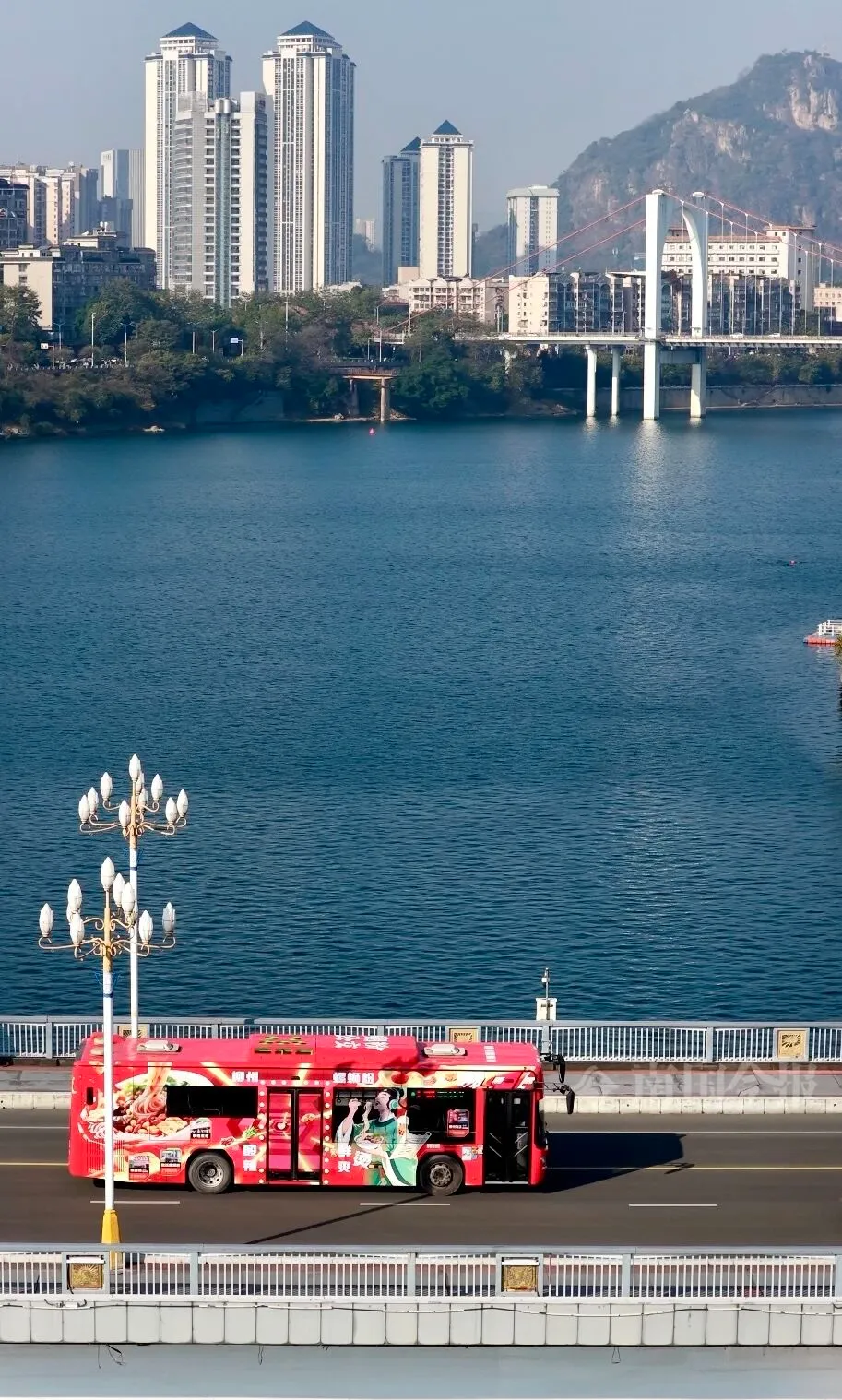 柳州“嗍粉公交”2.0升级版,穿梭在柳州城市美景间。今报记者何俊涛摄