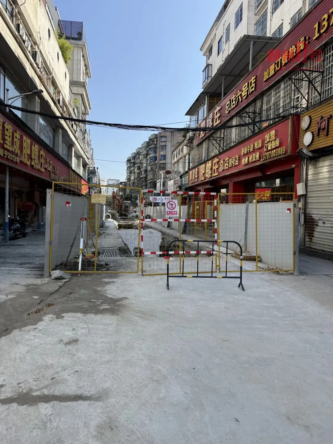 现场围挡外,不少路过的市民和周边老街坊停下脚步,对着沟槽里的柱状建筑物议论纷纷,猜测不断。