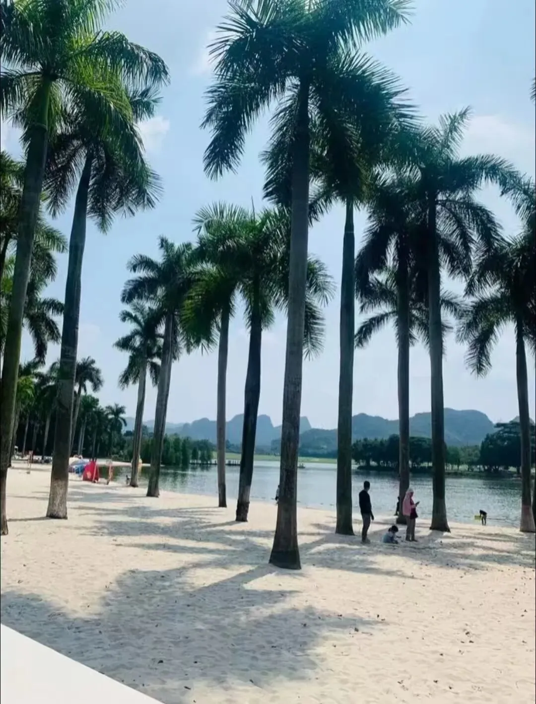 - 爱琴海湾“小三亚”:白色沙滩细软如银,搭配高耸椰林与欧式教堂,不用去北海就能拍出海岛度假感,下午4点的阳光洒在教堂上,氛围感直接拉满;