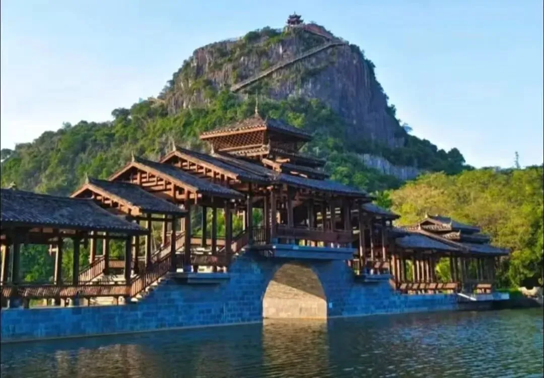 - 壮乡风雨桥:整座建筑无需一钉一铆,全靠木榫衔接,桥畔天福池水波荡漾,春夏季节荷叶飘香,站在桥上可拍摄鲁迅山与湖面的绝美同框 ;
