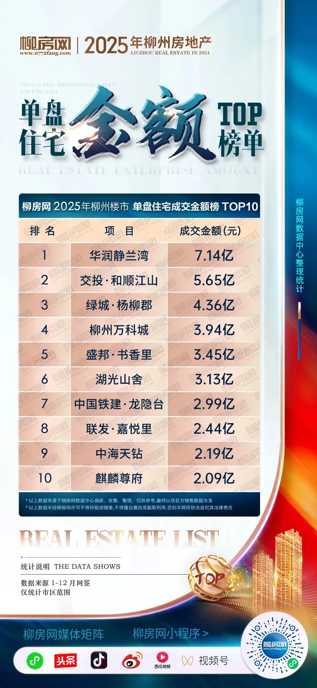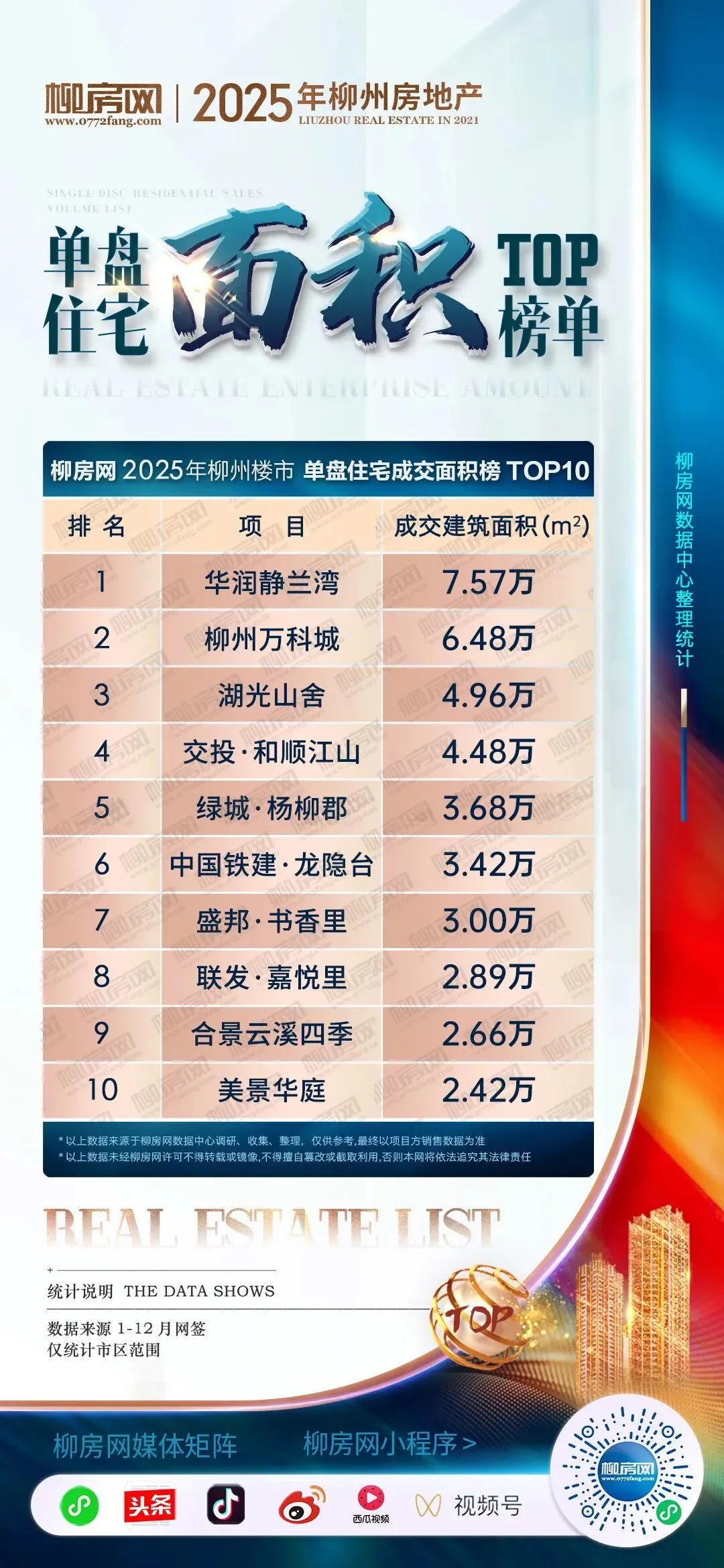 2025年度柳州楼市单盘住宅销量榜TOP10