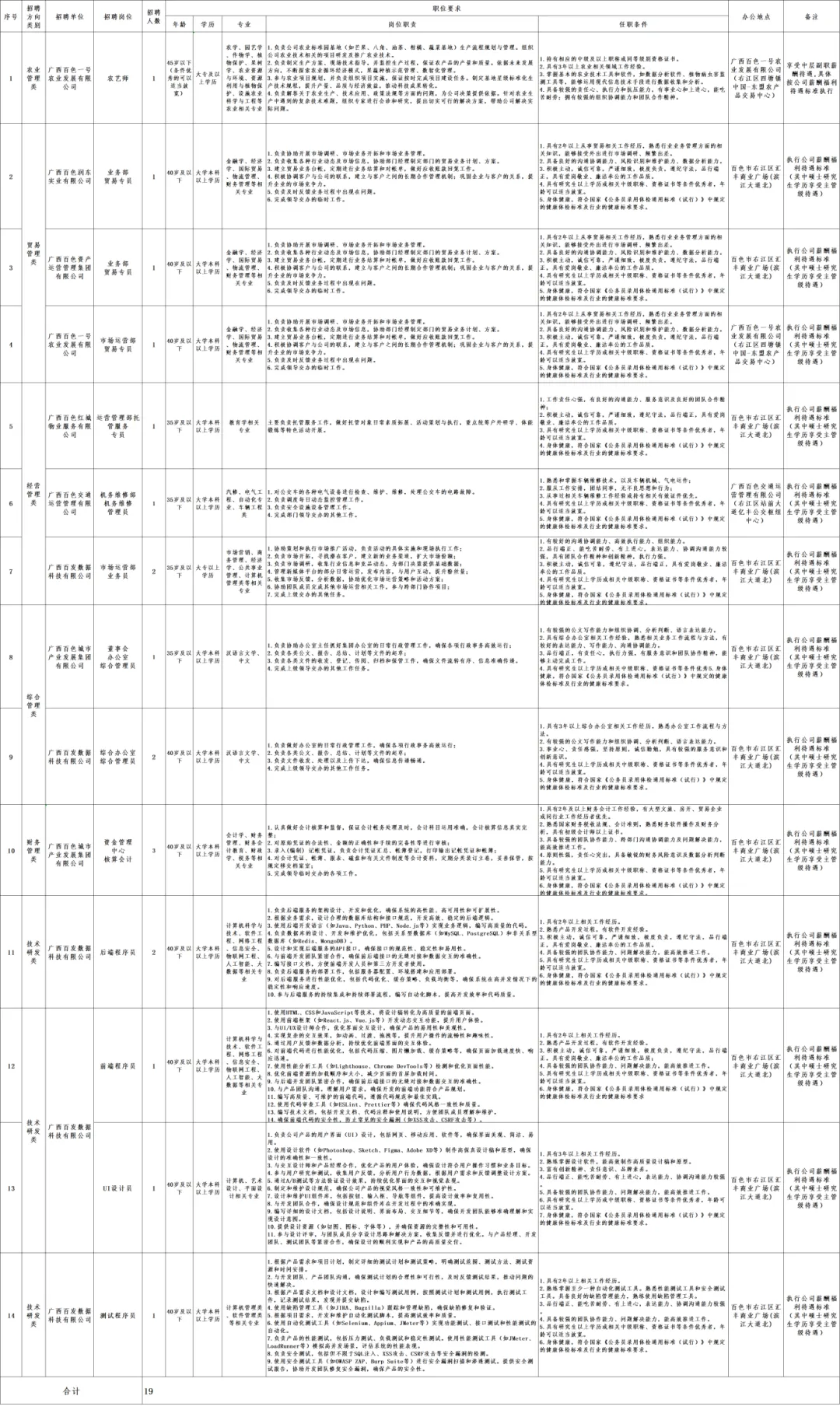 招聘岗位:本次共招聘14个岗位19人
