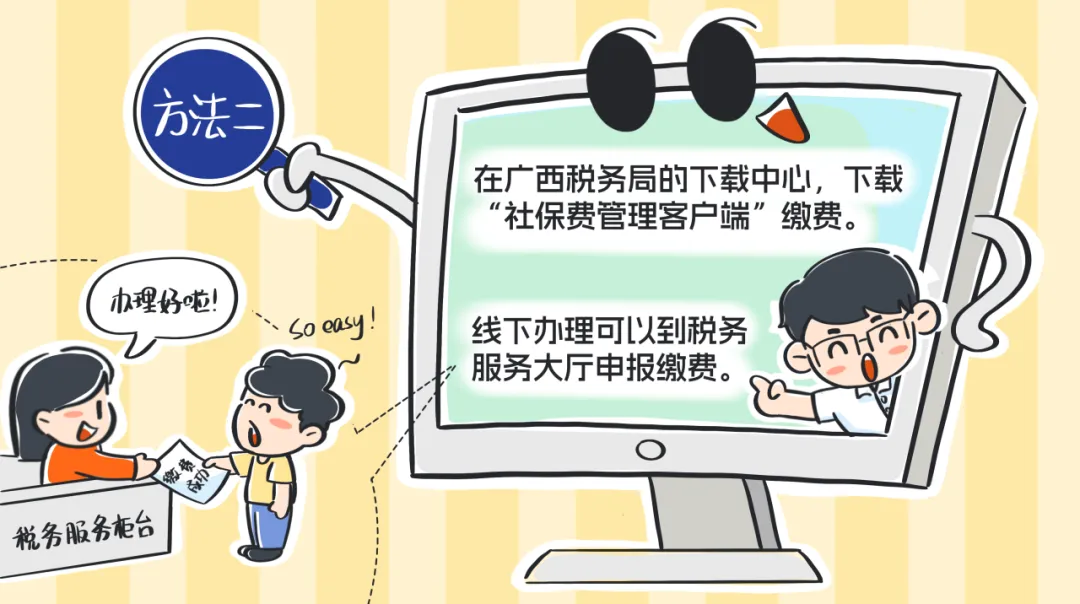 注:广西税务局网站(https://guangxi.chinatax.gov.cn/)首页“下载中心”可下载“社保费管理客户端”