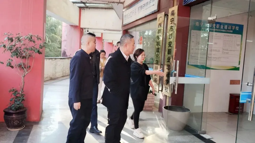 交流伊始,领导一行实地走访了嵘安职业培训学校的场地设施,现场了解南宁市嵘安职业培训学校的运营模式与实训资源配置,对学校将培训阵地与社区服务、校友资源结合的布局给予了肯定。