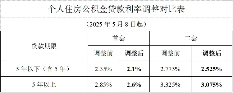 2025年5月8日起发放的个人住房公积金贷款,执行新利率。