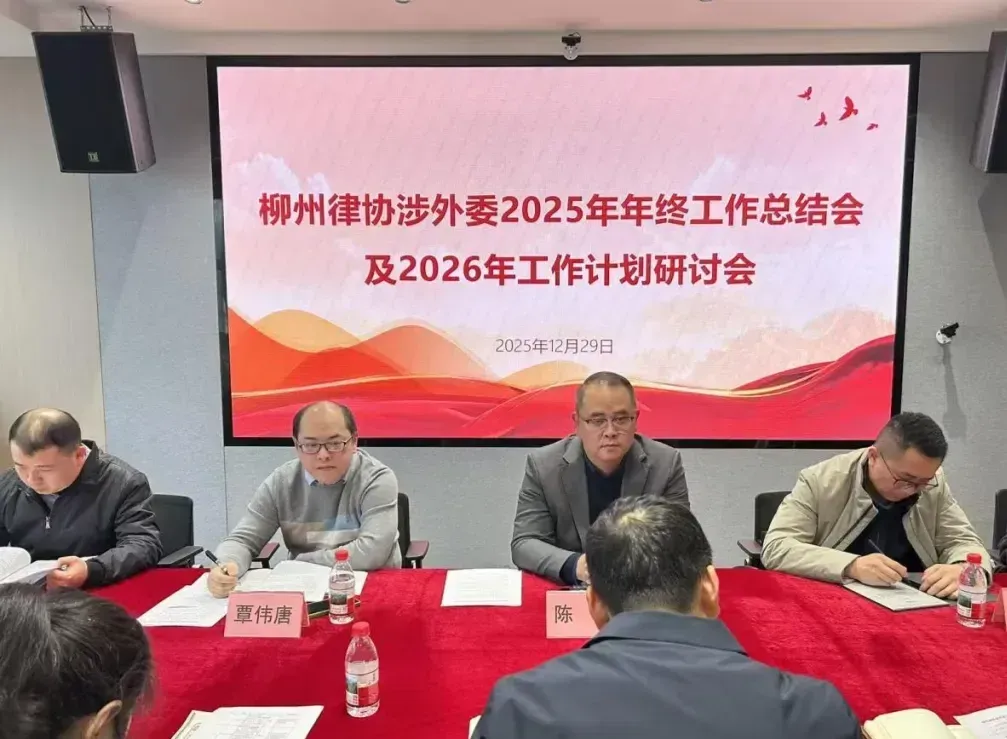 日前,柳州市律师协会涉外专业委员会(以下简称“涉外委”)2025年年终总结会在广西广正大律师事务所会议室召开。柳州市司法局党组成员、副局长、柳州律师行业党委书记陈欣与司法局律师科相关负责同志出席会议。柳州律师行业党委委员、市律师协会副会长平颖,涉外委主任王钢及涉外委委员、干事参加了会议。本次会议由王钢主任主持。