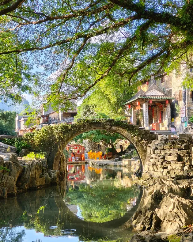 拍照最好在早晨七八点,光还软,墙体颜色不会死。古镇的石桥边好出片,别站正中,稍往右两步,人影落在水里,画面更活。