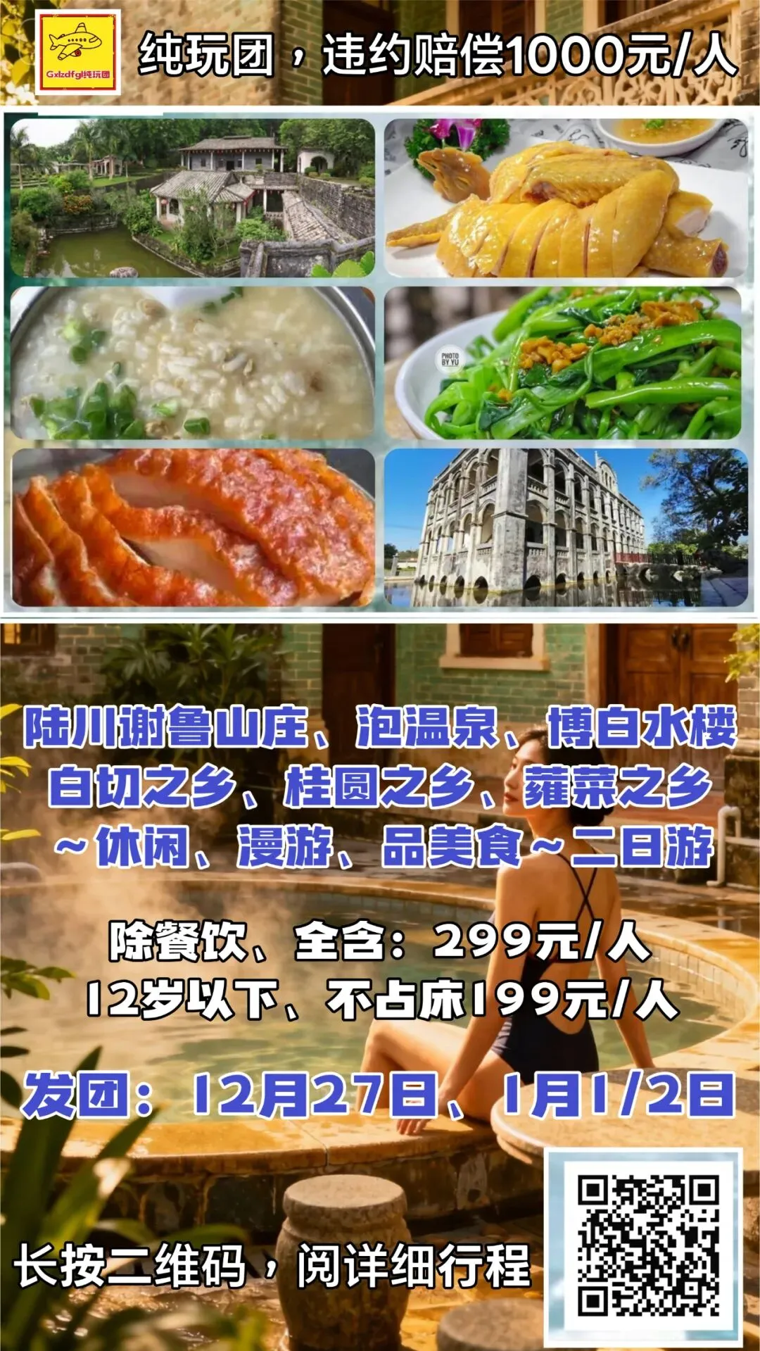 12月27日(已经成团,有位)【香浴陆川·柚见容县】温泉,容州古城纯玩二日游288元/人