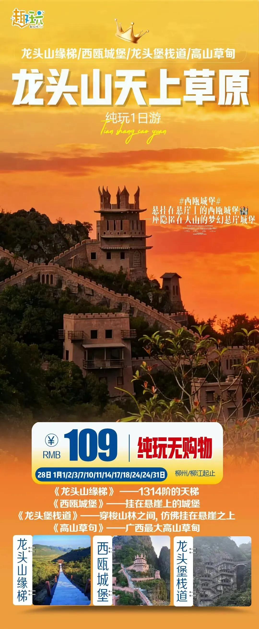 1月2日出发有位❗️贵港龙头山天上草原纯玩1日游109元/人