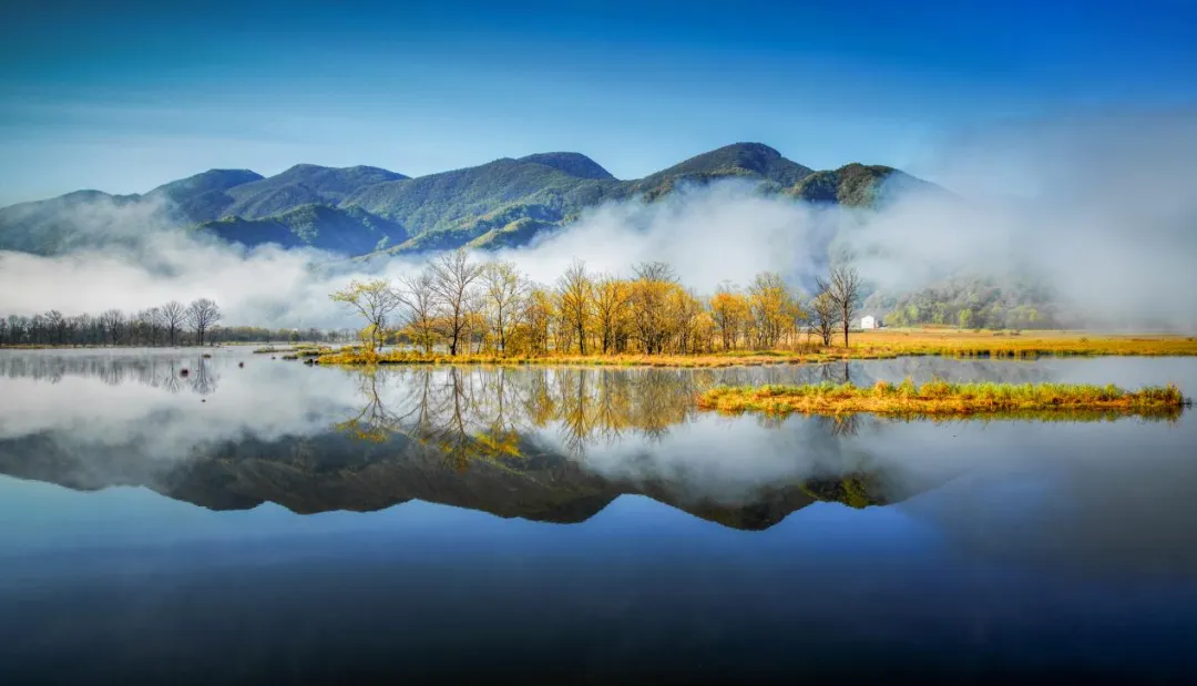 大九湖自然风光怡人,每片湖泊美得让人拍案叫绝,是很小众低调的出片圣地,这里“抬头见高山、地无三尺平”,被誉为“云间湿地”。