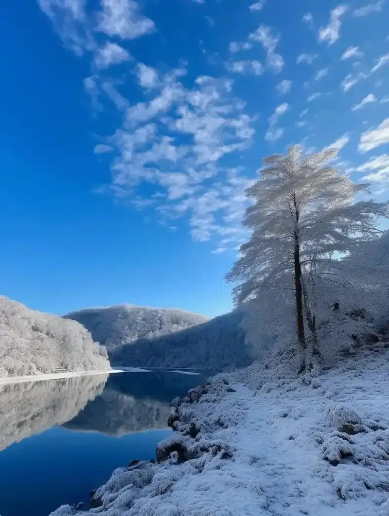 寒潮轻吻湖面,雪花翩跹而至,将这片“华中屋脊的明珠”瞬间点染成一幅诗意盎然的水墨长卷。接下来,请随我们的旅程,一同沉浸在这片静谧绝尘的冰雪仙境。