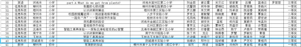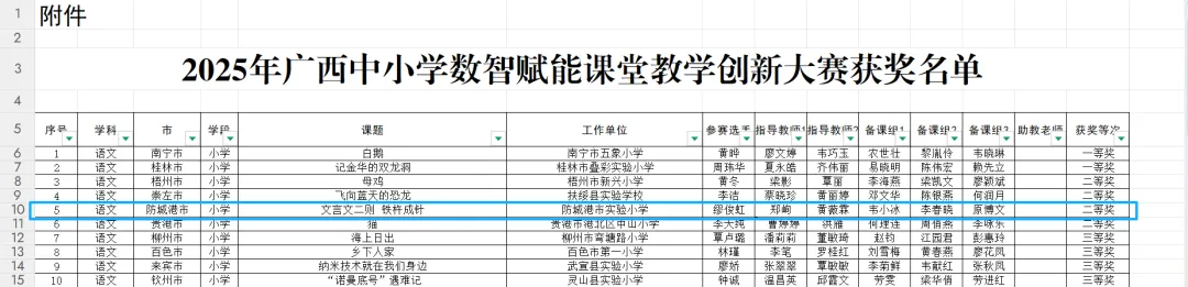 图为:2025年广西中小学数智赋能课堂教学创新大赛获奖名单截图