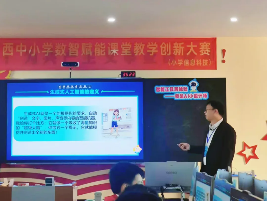 图为:翁维达老师参加2025年广西中小学数智赋能课堂教学创新大赛(小学信息科技)