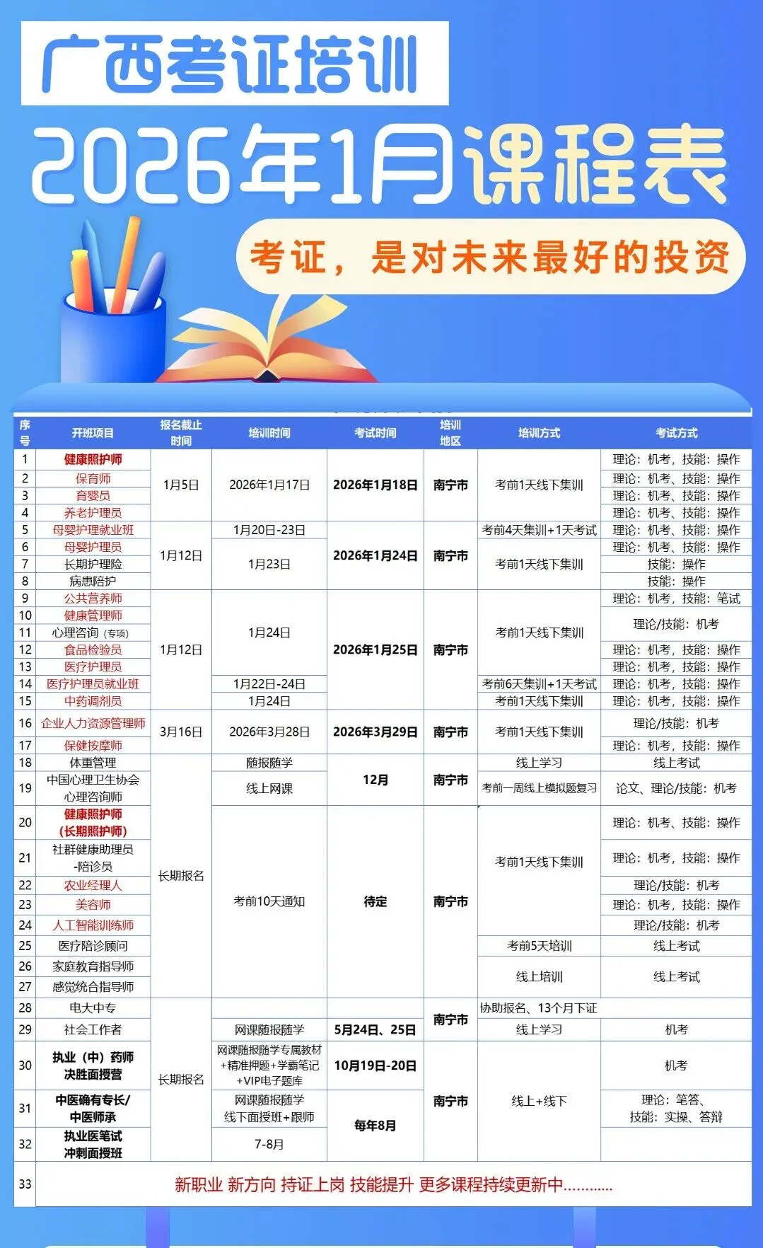 保育师、育婴员、母婴护理员(月嫂)、心理辅导专项能力、医疗护理员(护工)、健康管理师、公共营养师、企业人力资源管理师、食品检验员、中药条件员等职业资格证考证培训,符合条件拿证后可申请1000-2000元政府补贴!