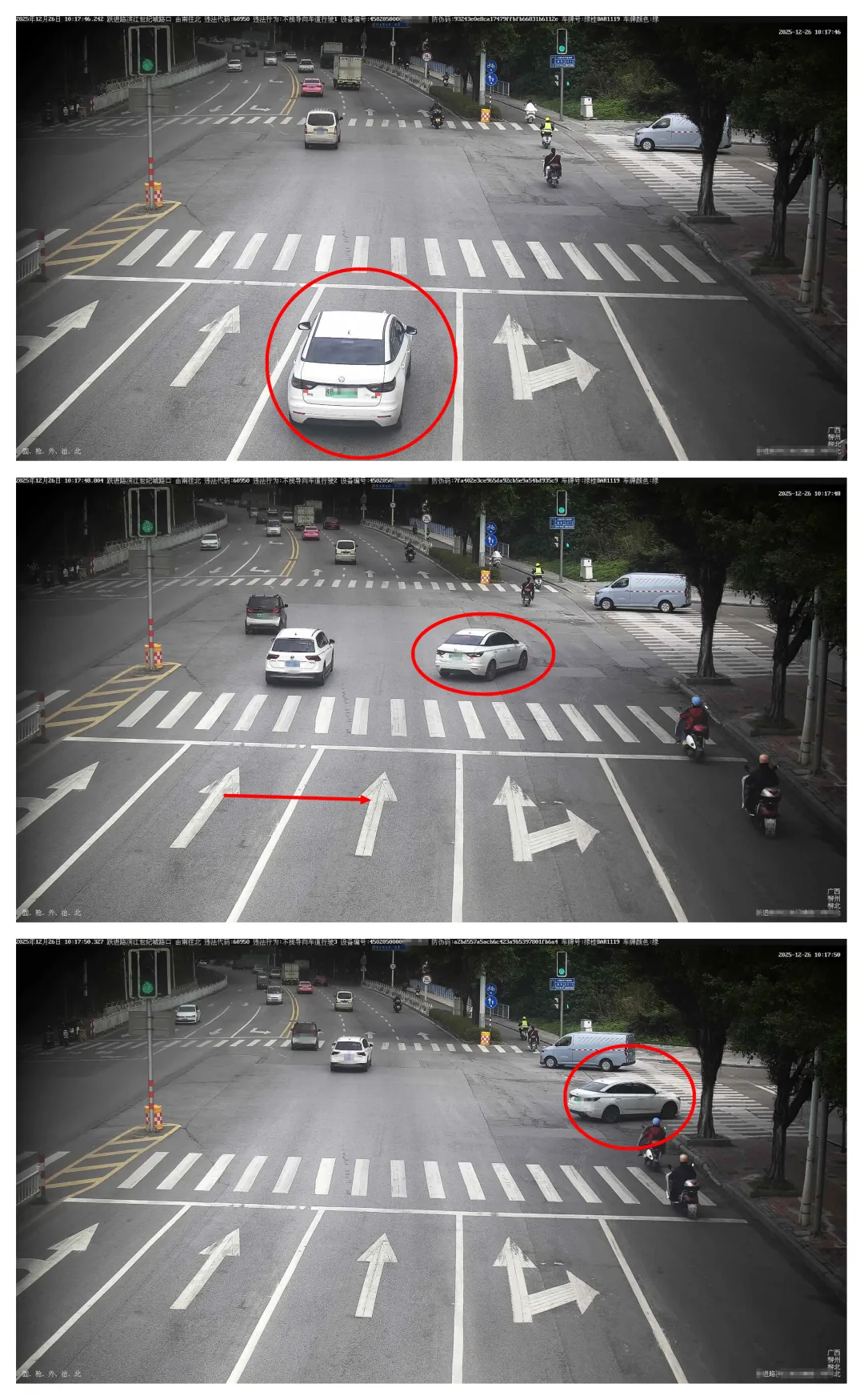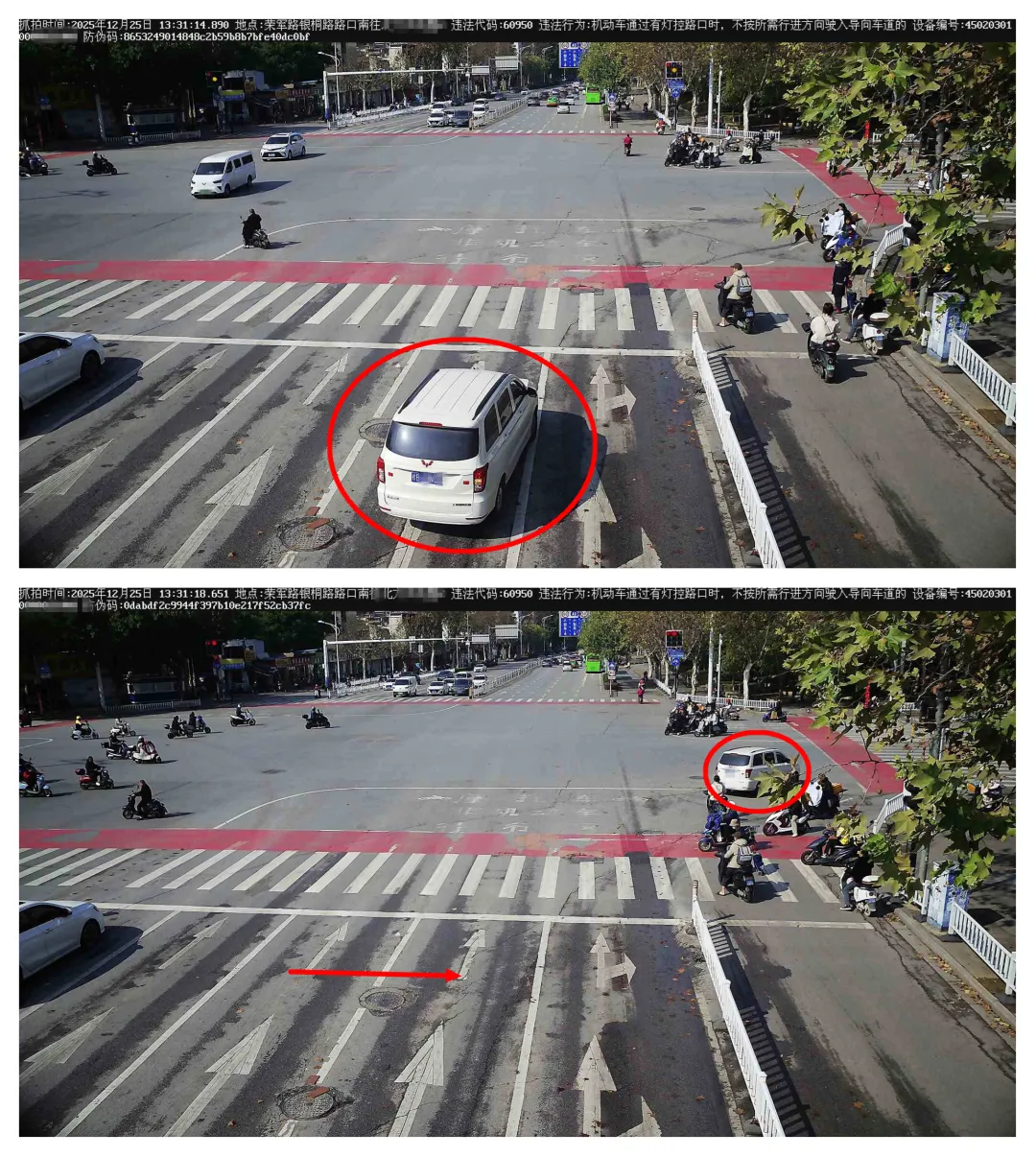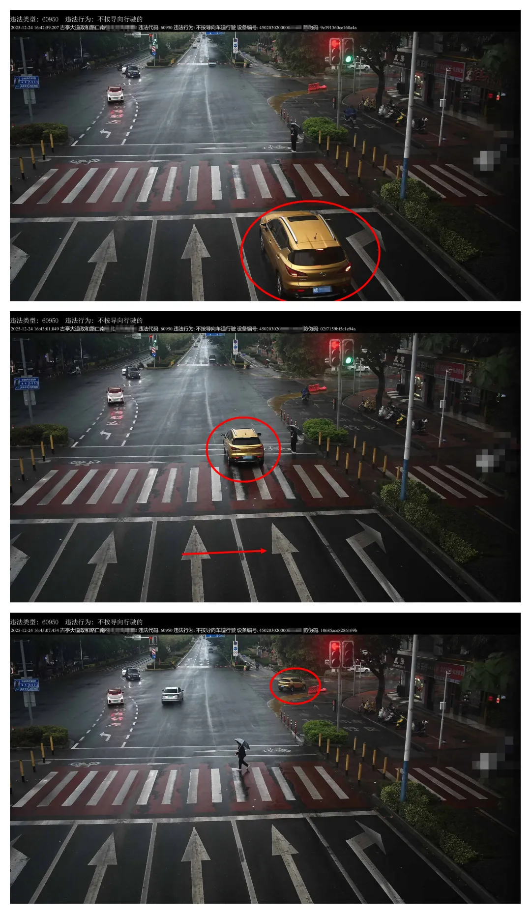 上述车辆均因“机动车通过有灯控路口时,不按所需行进方向驶入导向车道”的违法行为,已被依法录入交通违法处理系统,驾驶人将面临相应处罚。