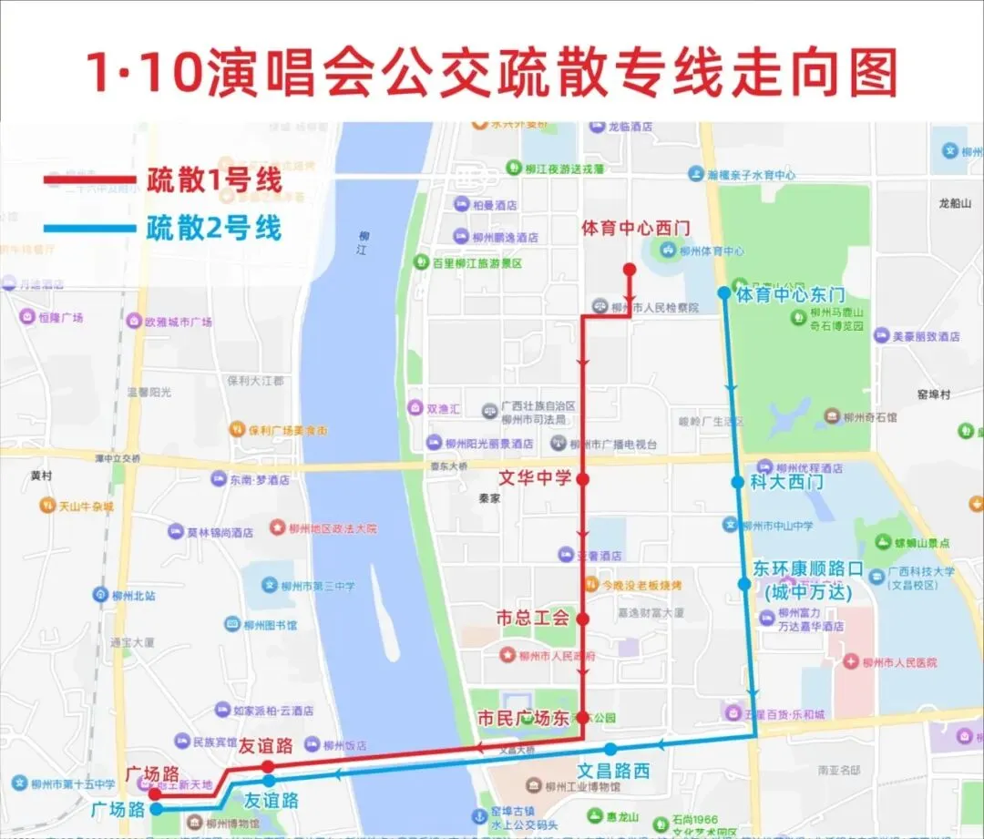 为方便观众乘公交前往观演,柳州恒达巴士股份有限公司将在演唱会当天,加大途经火车站与体育中心的公交线路运力,并根据实时客流灵活增加发车密度。