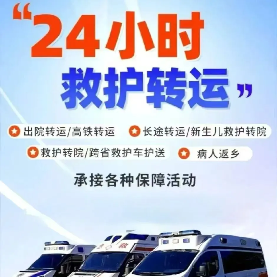 我们是救护车出租转运公司,120救护车接送病人预约护送。24小时为术后康复、危重患者及跨区域就医人群提供专业医疗转运服务,提供120救护车转运出租‖私人120救护车(非急救)‖跨省长途转运‖危重病人转运‖市内转运‖术后康复病人转运‖高铁病人转运‖患者返乡‖大型活动赛事保障‖配备ICU设备:呼吸机▪心电监护仪▪吸痰器•微量泵•氧气▪急救药箱▪专业医护团队