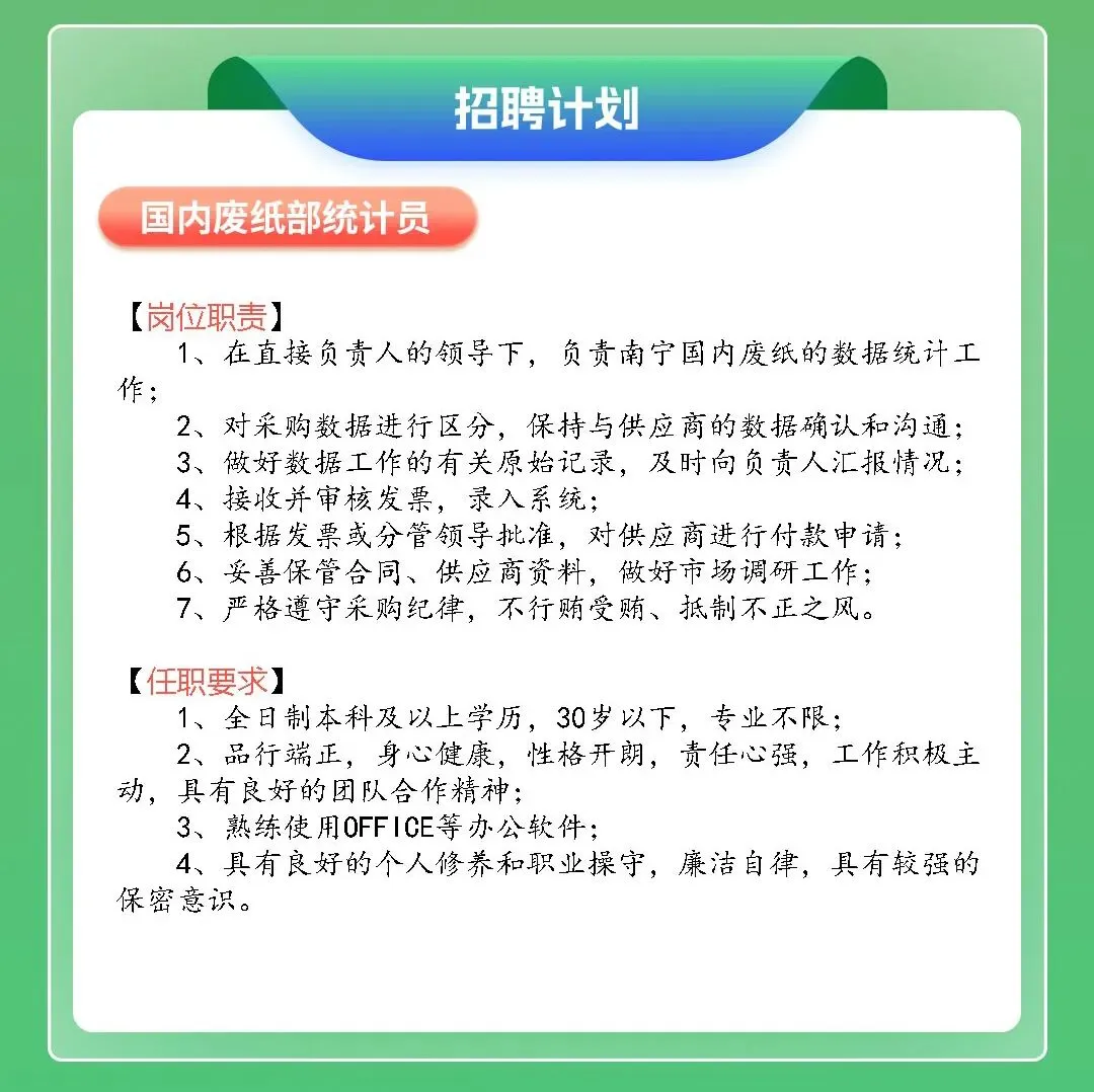 >南宁太阳纸业2026年校园招聘【国内废纸部统计员】岗位网申通道