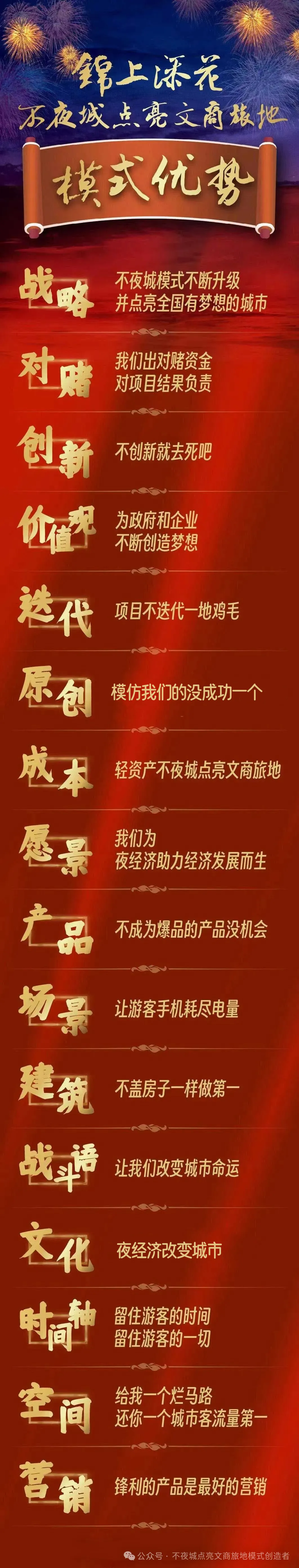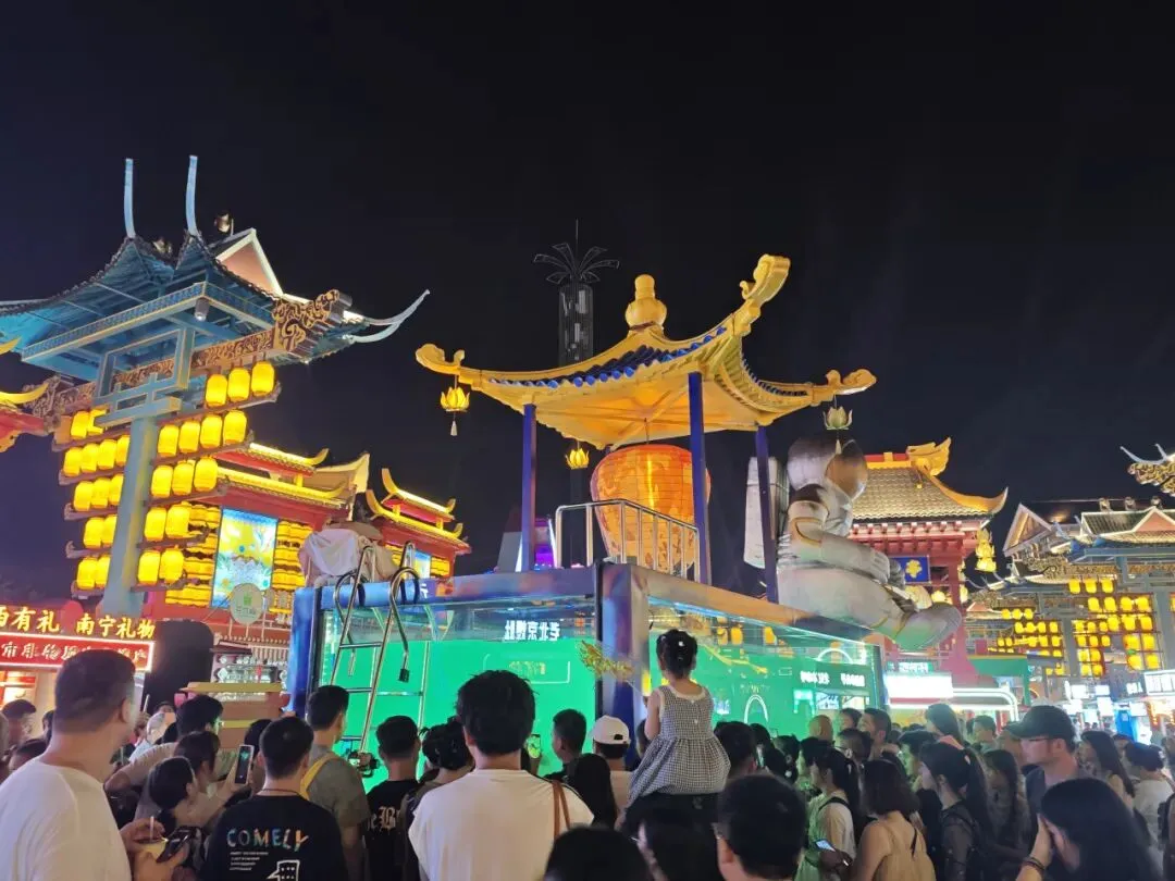 南宁之夜丰富的街区演艺内容与多方业态,其融入了广西少数民族壮族传统文化、文创项目、科技创新、舞台装置、行为艺术、观景打卡等一系列元素,充分利用吃、喝、玩、乐、购 ,休、秀、闲、娱、康这十大旅游因素,形成自有商业闭环。