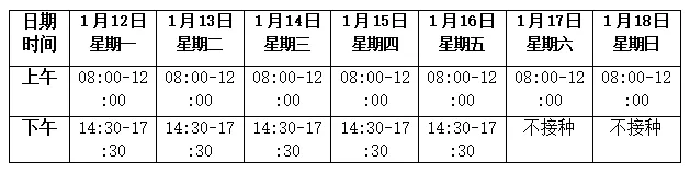 2026年1月12日(星期一)至2026年1月18日(星期日)青秀分院疫苗接种信息如下:
