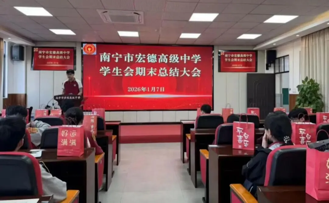 为回顾工作成果、表扬先进典型、明确未来方向,1月7日,南宁市宏德高级中学团委召开学生会期末总结大会。