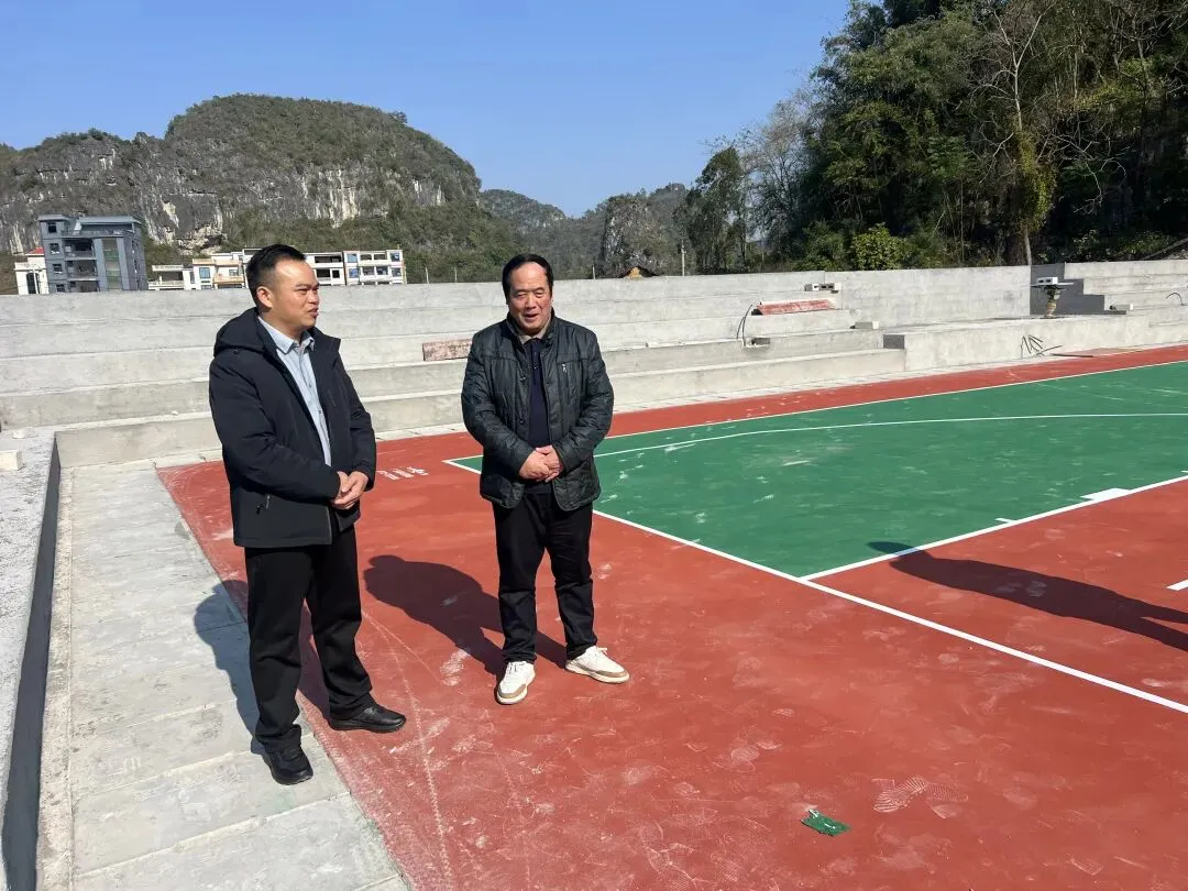 在丹灵村篮球场建设现场,调研组一行实地察看了场地基础施工、看台浇筑、塑胶面层铺设等工程进度,详细听取了项目负责人关于篮球场规划设计、建设工期、功能布局等情况的汇报。据了解,丹灵村篮球场项目占地4亩,目前主体工程已进入收尾阶段,预计2026年1月底全面建成投用。该篮球场建成后将成为忻城县规模最大的村级篮球场,可容纳4000名观众观赛,不仅能满足村民日常篮球运动、健身休闲的需求,还可承办各类村级、乡级体育赛事活动。