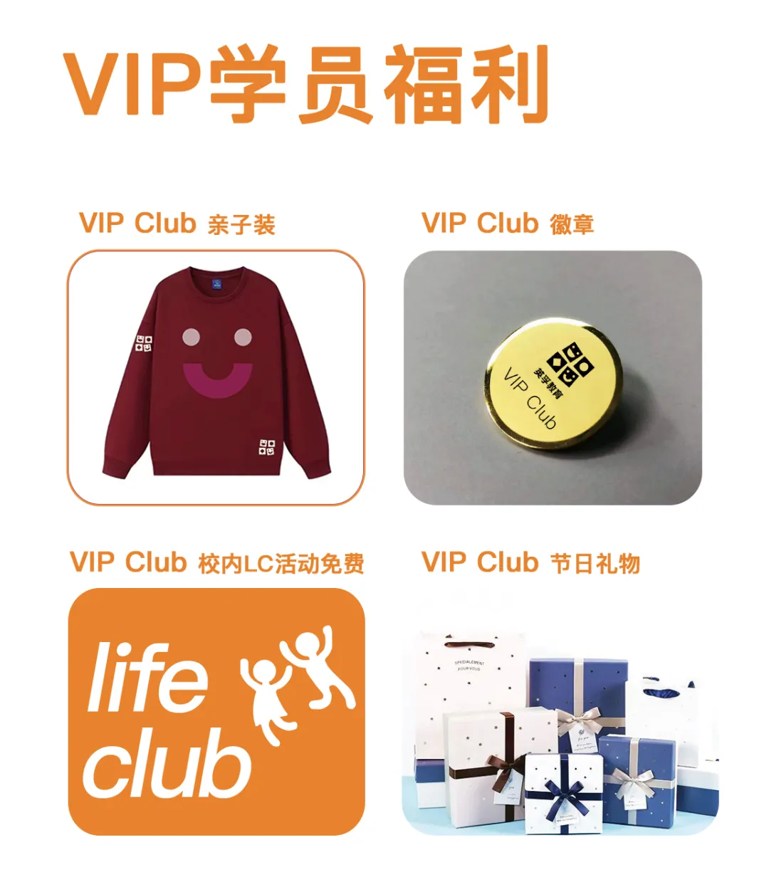 亲爱的家长和小朋友们,成为英孚VIP会员,不仅是学习英语的卓越选择,更是一段充满惊喜与温暖的成长旅程,我们为VIP学员精心准备了四大专属福利,让每一次学习都闪耀独特光芒。