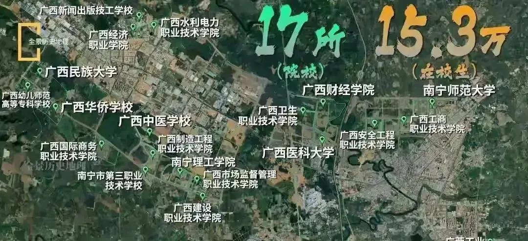 现在南宁到武鸣开车或公交高峰期轻松1个多小时,单程距离约30-40公里,师生每天来回两趟,时间成本高到让人劝退。大学城目前已聚集近20所高校,本科高职齐全,在校生规模轻松破10万,像广西财经学院占地2600亩、南宁师范大学武鸣校区容纳2.2万人,体量直追广州大学城。