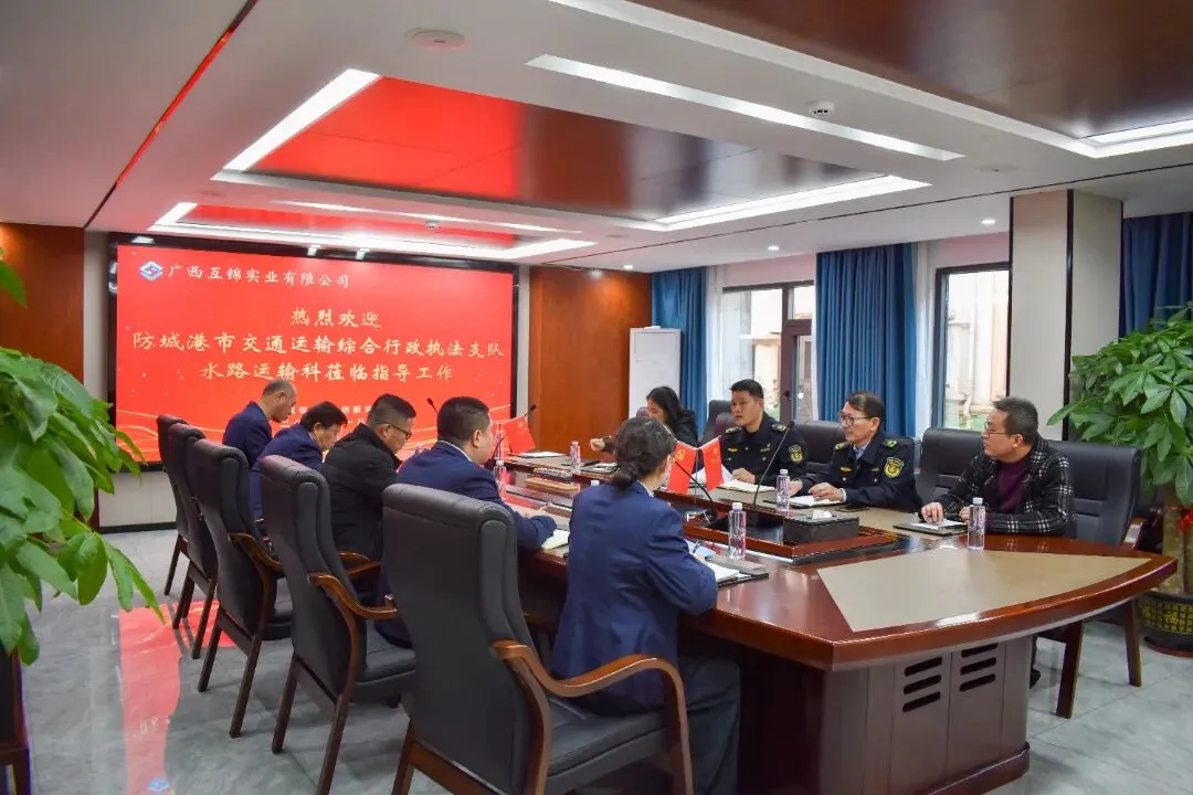 筑牢安全防线,护航平安春运。为扎实做好2026年春运春节水路运输安全保障工作,2026年1月8日,防城港市交通运输综合行政执法支队水路运输科检查组一行莅临我司,开展2026年春运春节交通运输安全生产重大风险隐患排查整治工作。